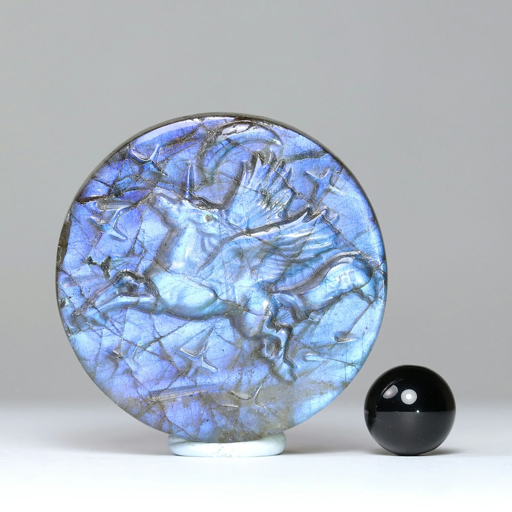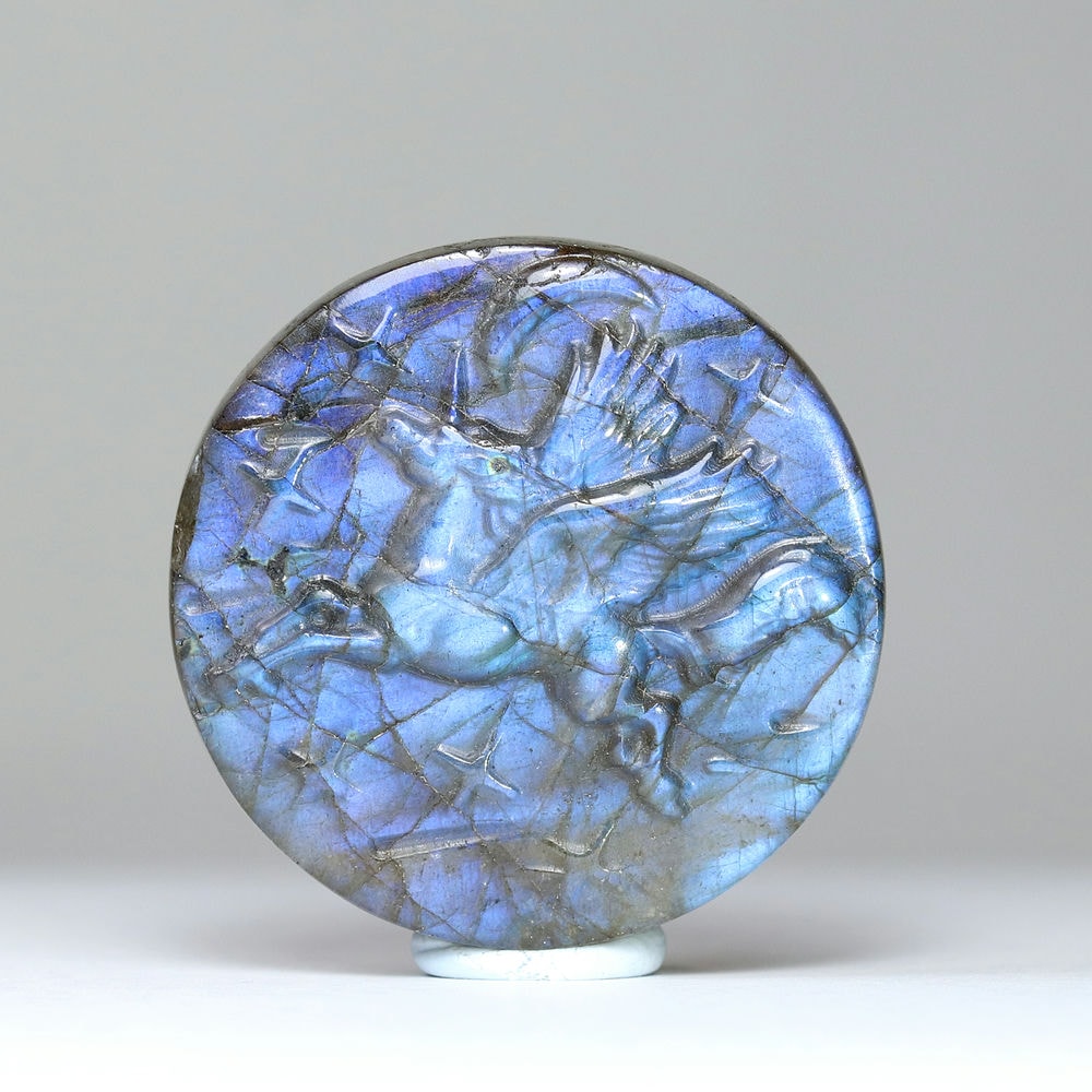 記念特価★マダガスカル産ラブラドライトユニコーン彫刻コイン(オブジェ)