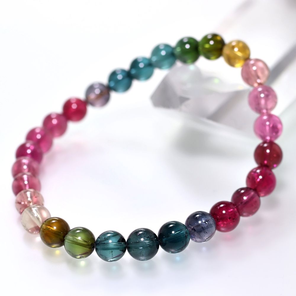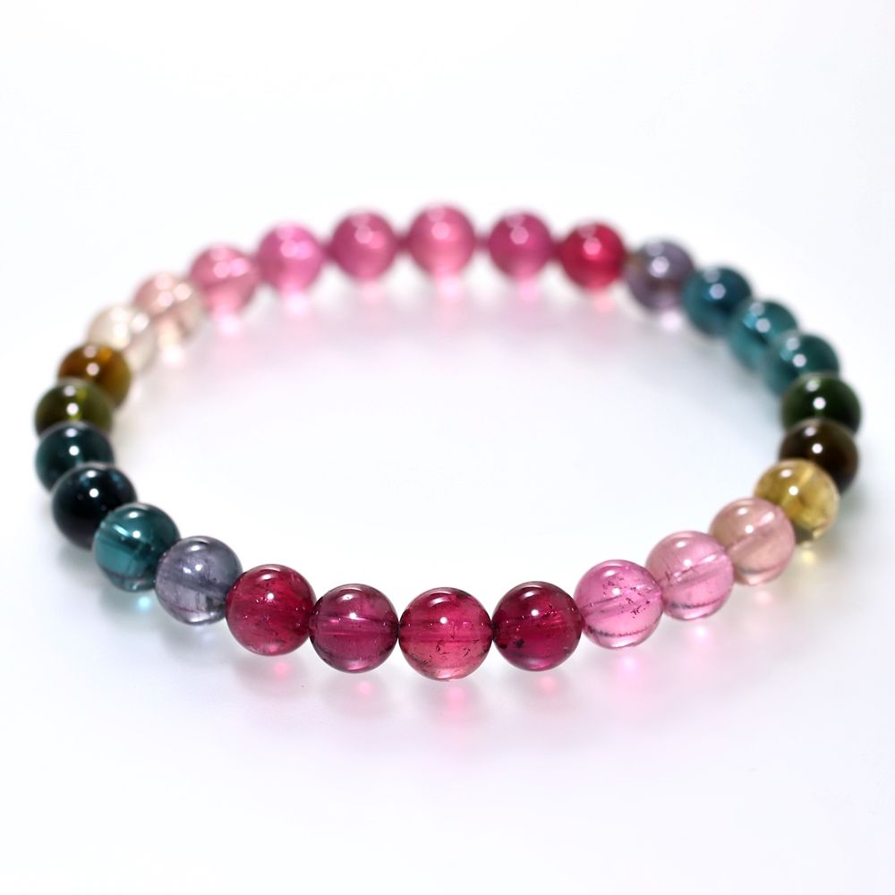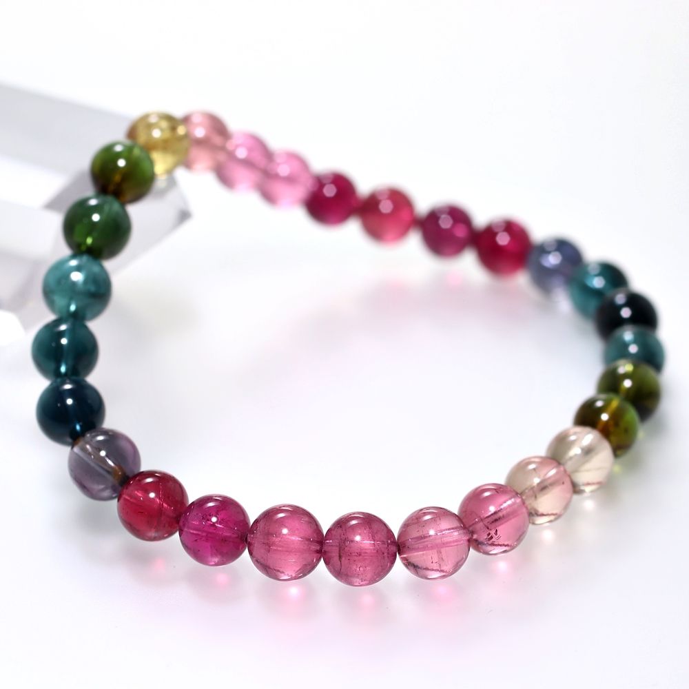 記念特価★[最高品質]ブラジル産宝石質マルチカラートルマリンブレスレット(約7mm玉・希少ブルーを加えたスペシャルクオリティ!)