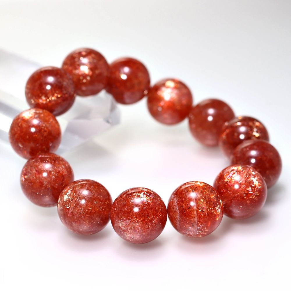 記念特価★[希少大玉!高品質++]タンザニア産サンストーンブレスレット(約16.5mm大玉!)¥124,000クイックガイド送料