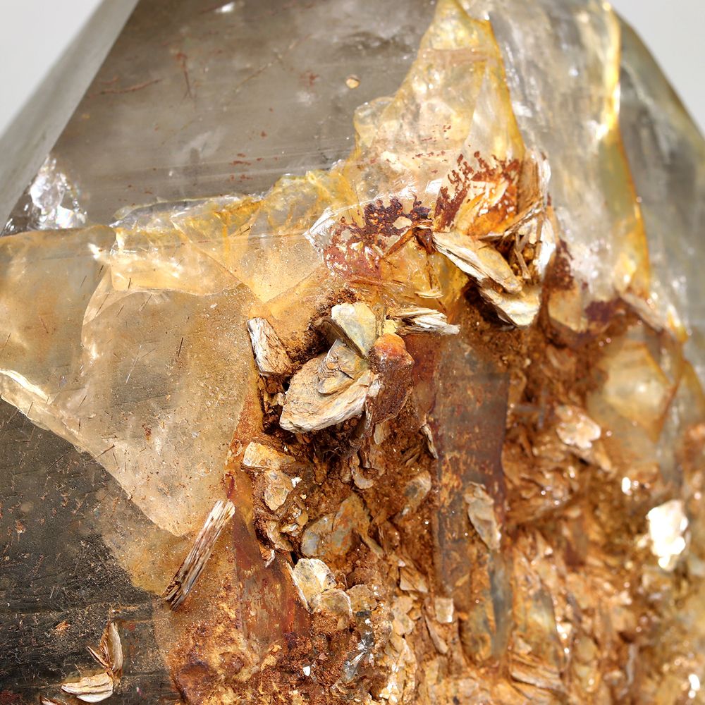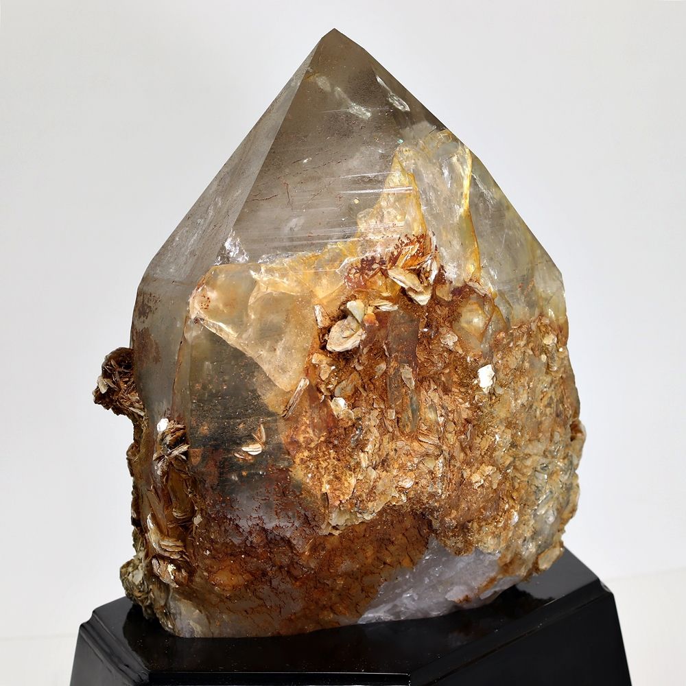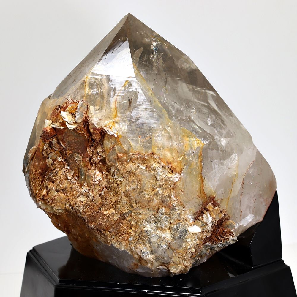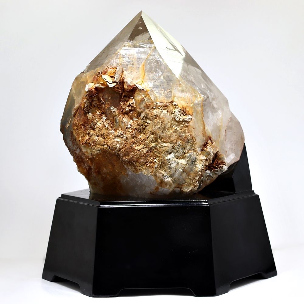 これほど大きなサイズながら、品質としても申し分なく、透明度高く内部の結晶構造が視認できるほど。さらに、ブラックトルマリンやマイカが共生。内部には美しい天然レインボーが現れます。