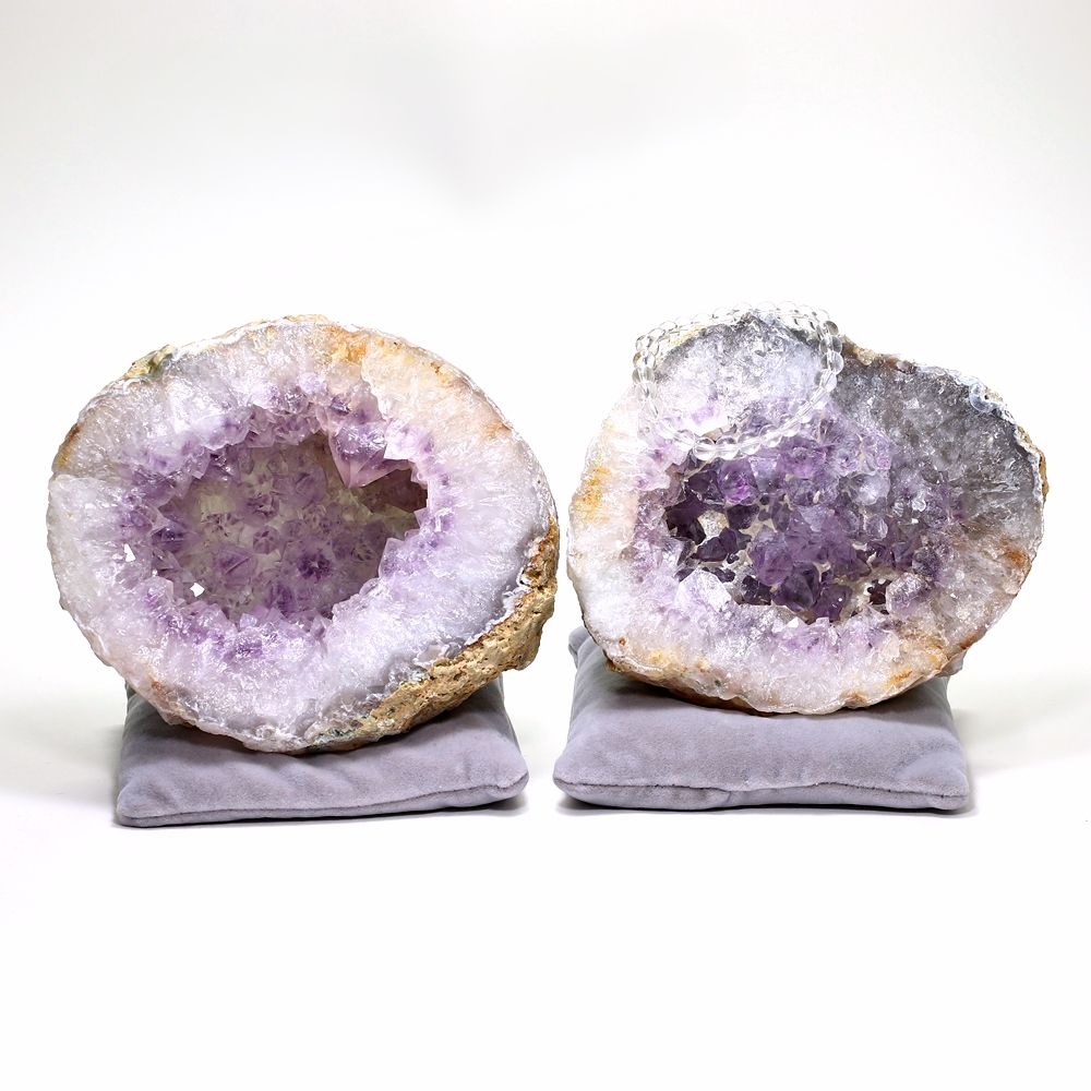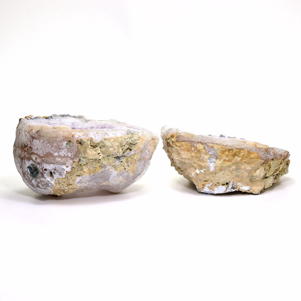 ご用意したお品は、丸いジオードを半分に割ったままのペア(一対)で、合わせるとぴったりと重なります。