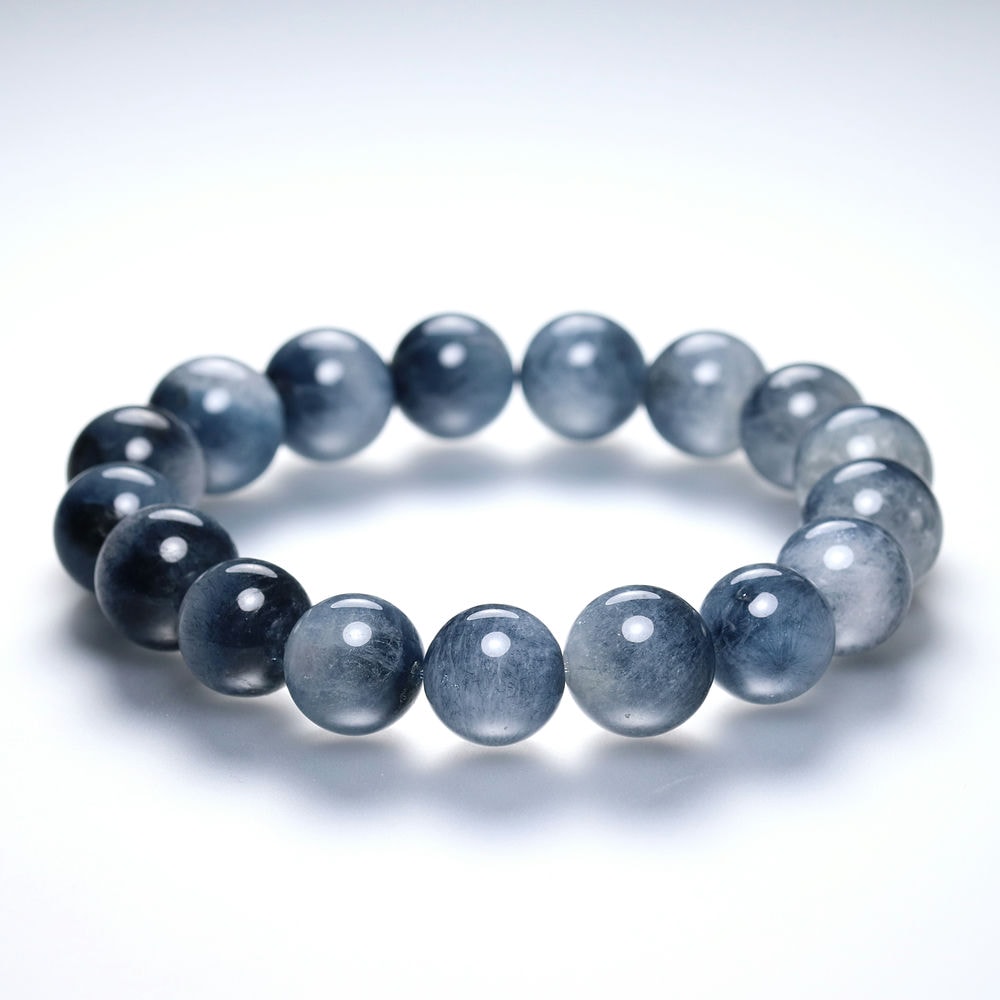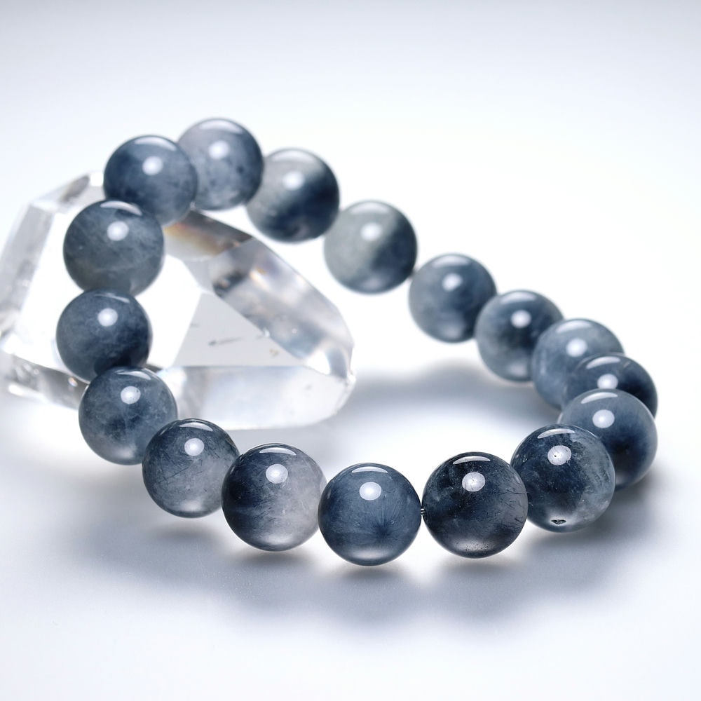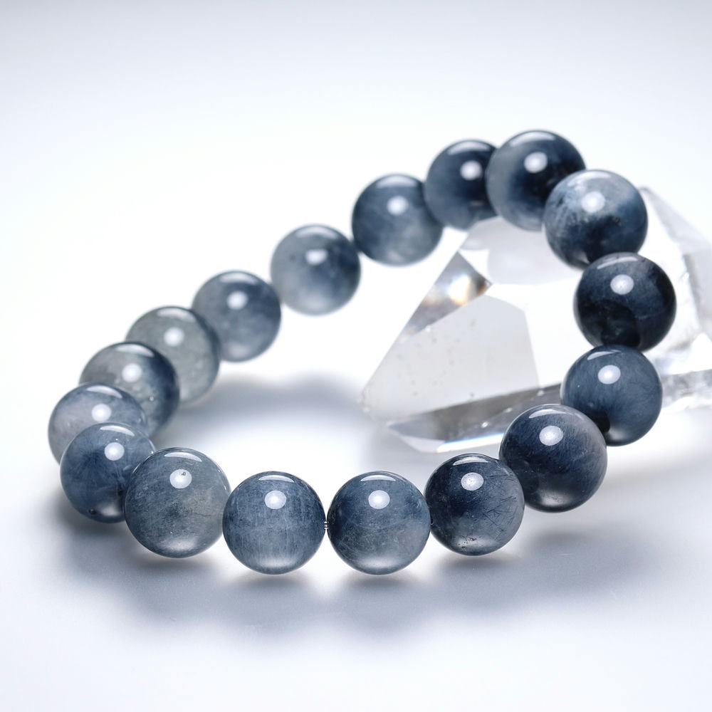 [3A]ブルートルマリンインクォーツブレスレット/インディゴライトインクォーツ(約13mm玉)