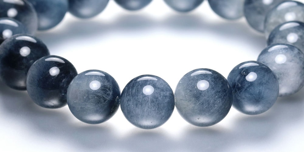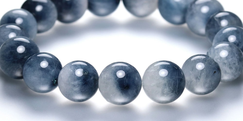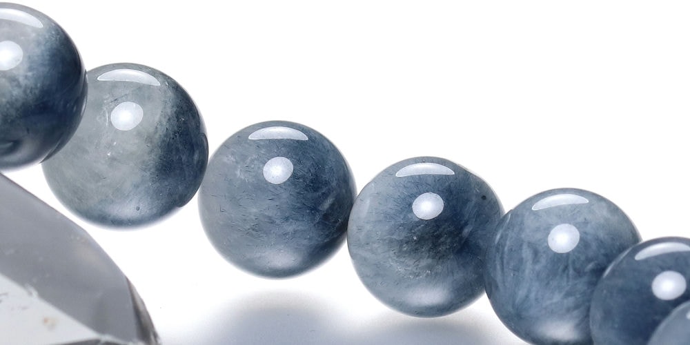 水晶透明度が控えめな点から3A品質としていますが、ブルートルマリンの内包量は申し分なく、ホワイト過ぎず、ブルー過ぎない、絶妙な色合いのバランスが、ブレスレット全体に美しいグラデーションを生み出しています。