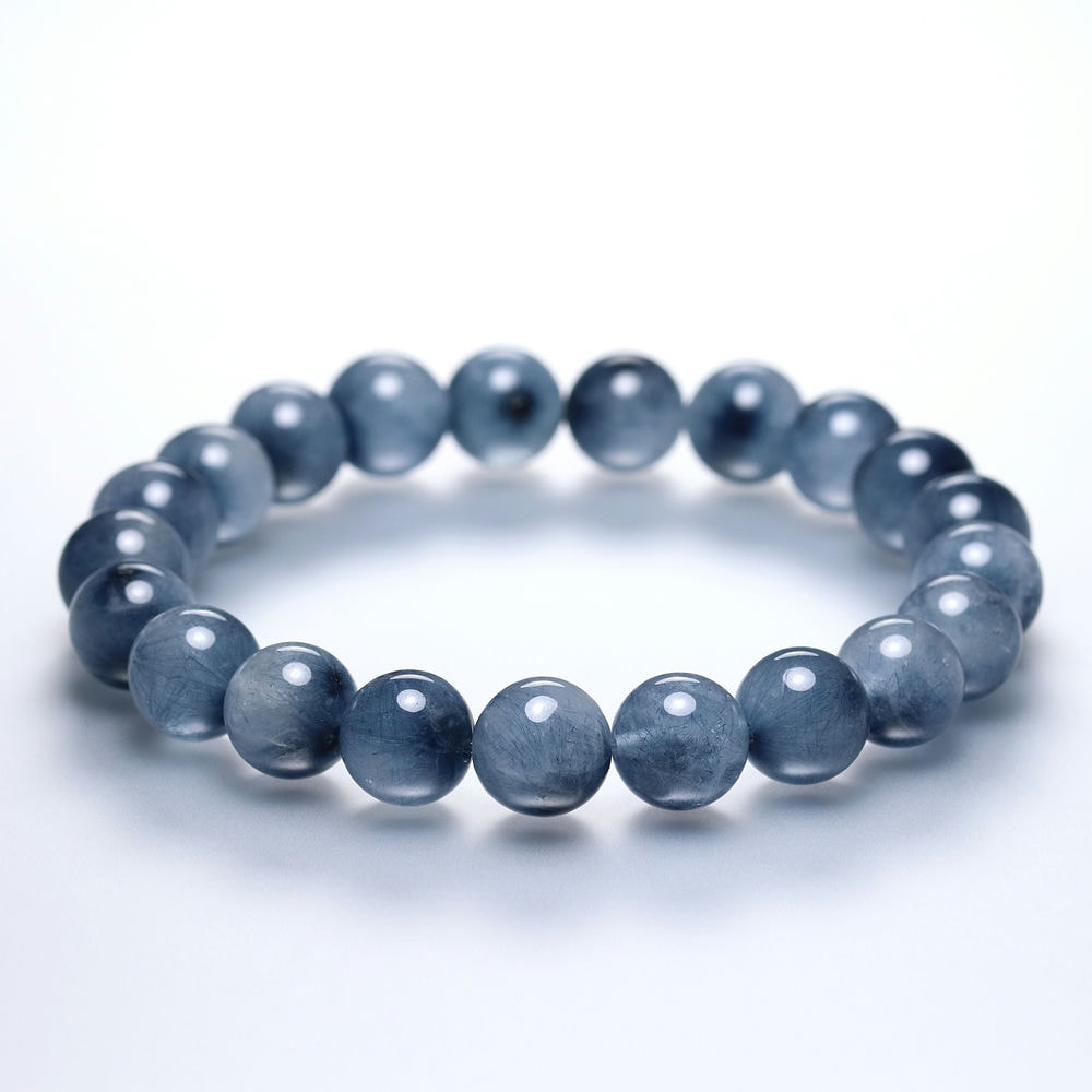 [3A+]ブルートルマリンインクォーツブレスレット/インディゴライトインクォーツ(約9.5mm玉・小さな凹みが多めのため特価!)