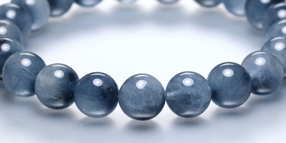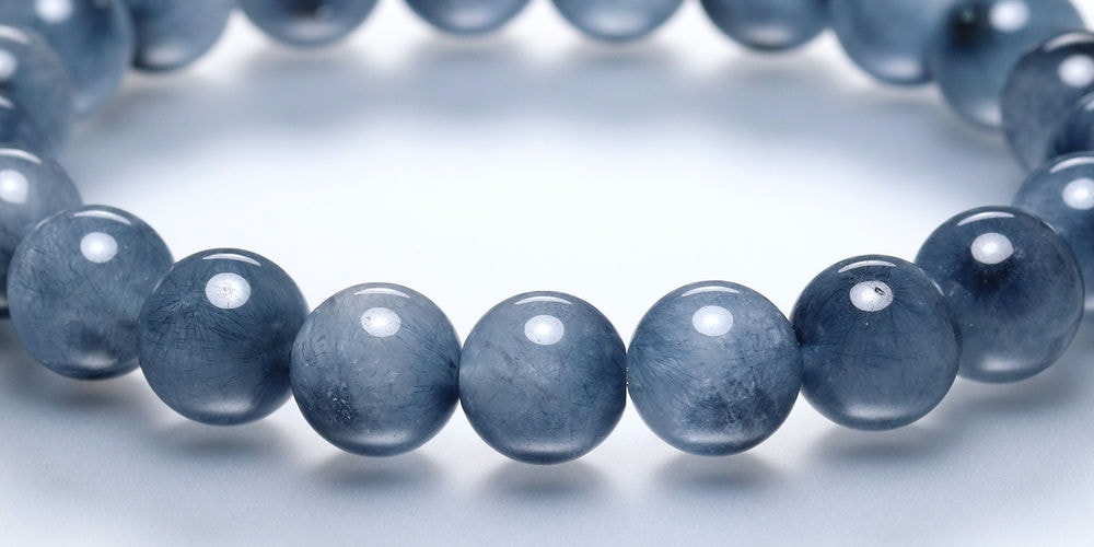 水晶透明度が控えめな点から3A品質としていますが、ブルートルマリンの内包量は申し分なく、ホワイト過ぎず、ブルー過ぎない、絶妙な色合いのバランスが、ブレスレット全体に美しいグラデーションを生み出しています。