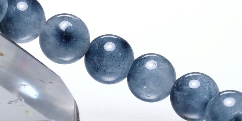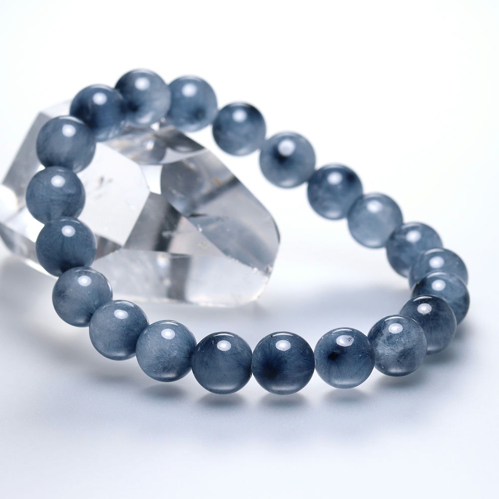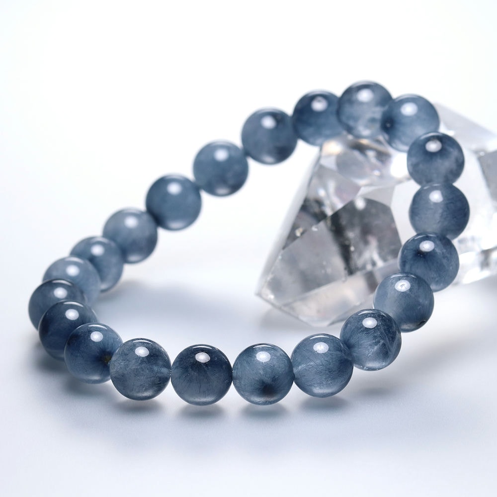 インディゴブルーのトルマリンが水晶に閉じ込められたインクォーツブレスレット