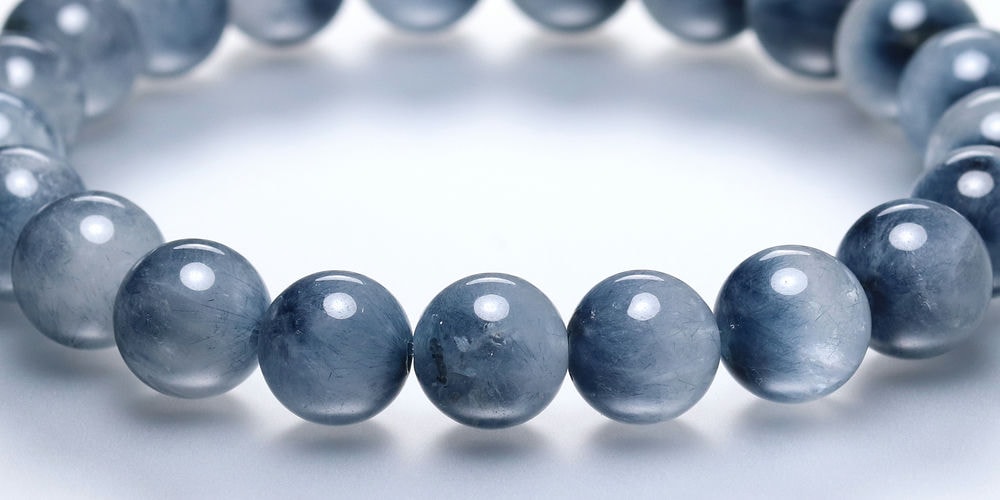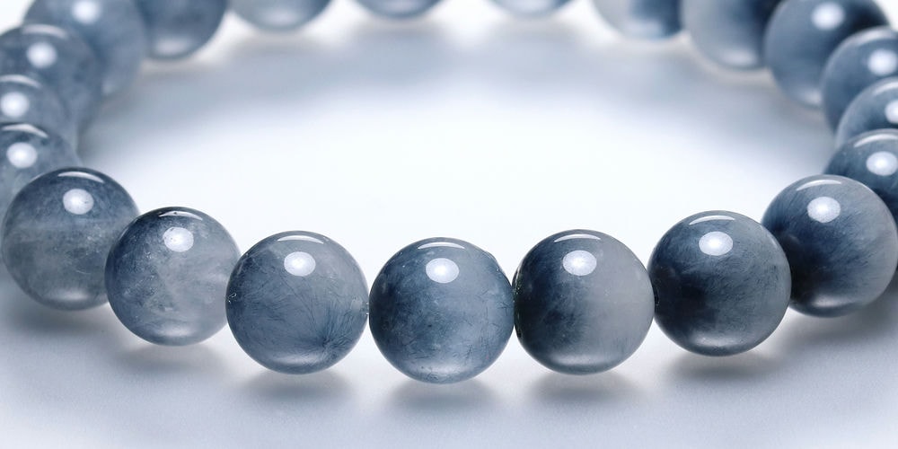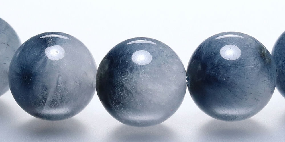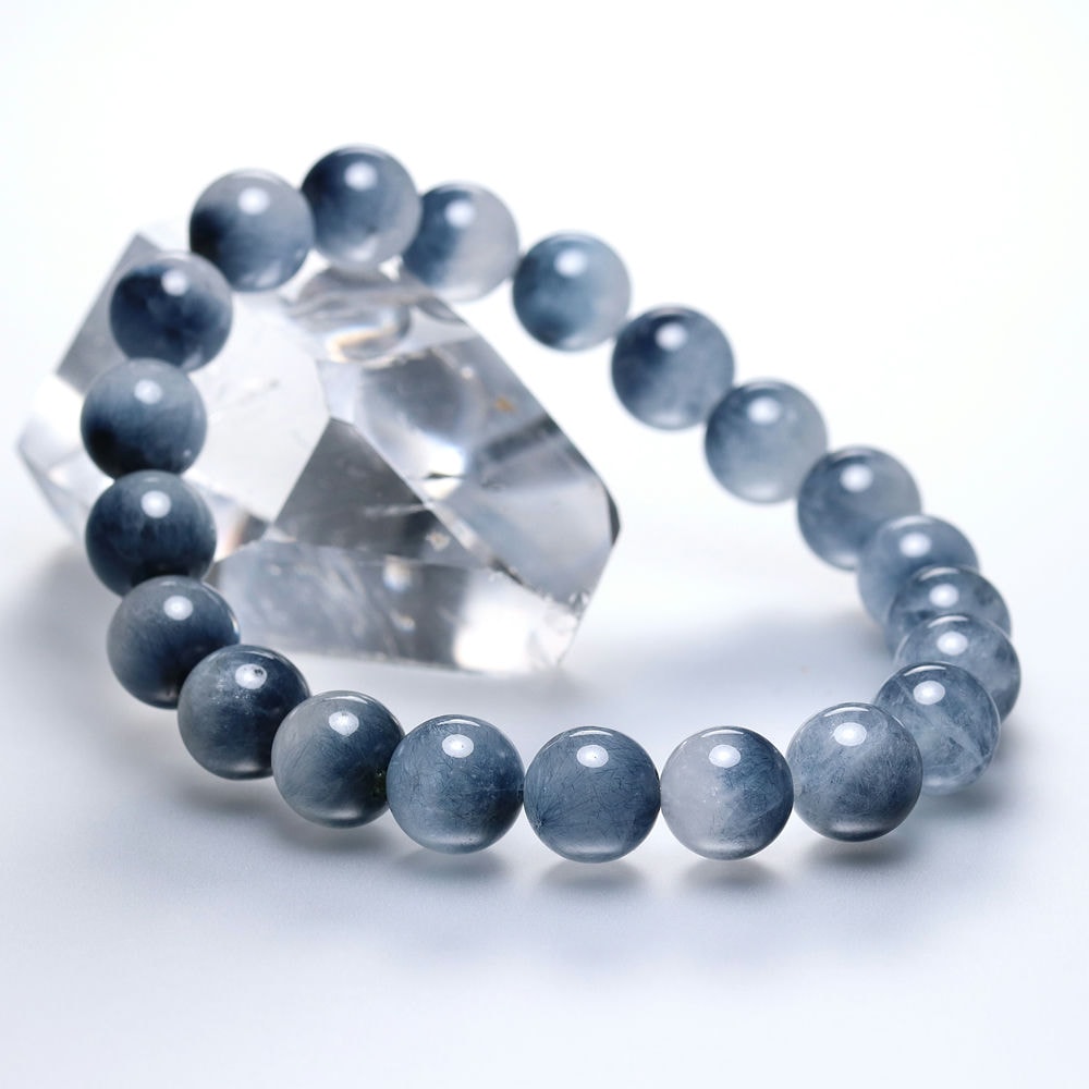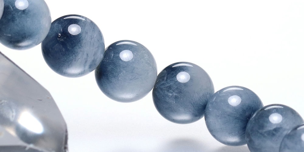水晶透明度が控えめな点から3A品質としていますが、ブルートルマリンの内包量は申し分なく、ホワイト過ぎず、ブルー過ぎない、絶妙な色合いのバランスが、ブレスレット全体に美しいグラデーションを生み出しています。