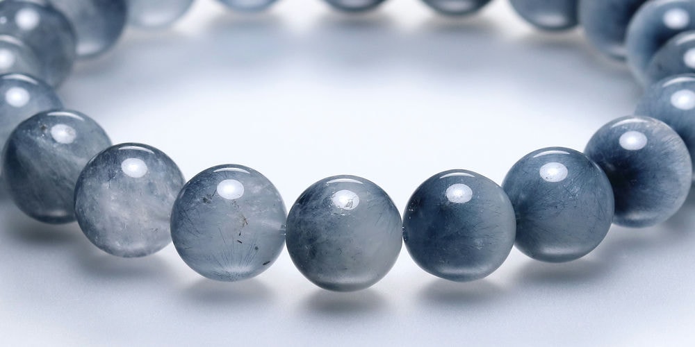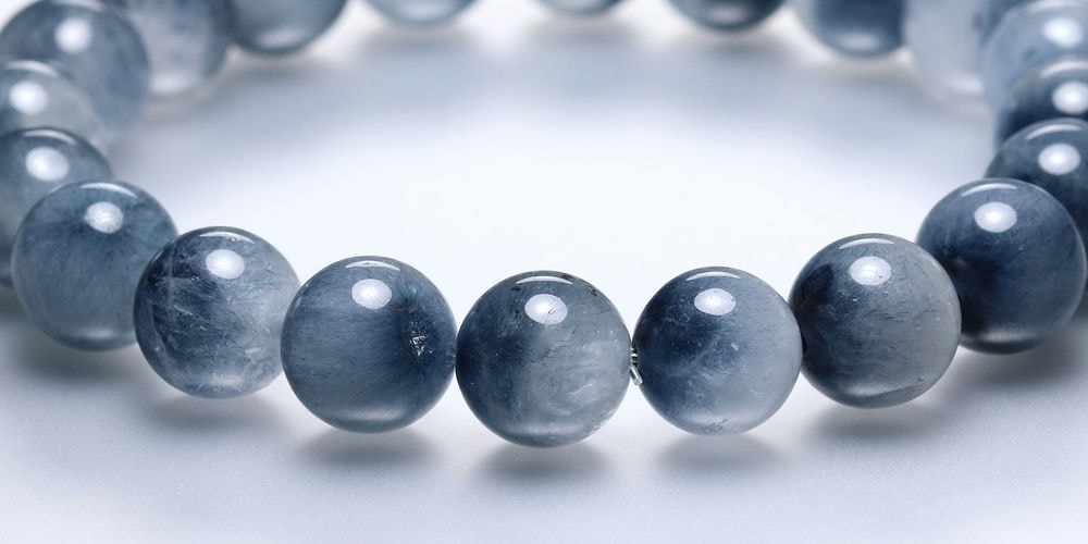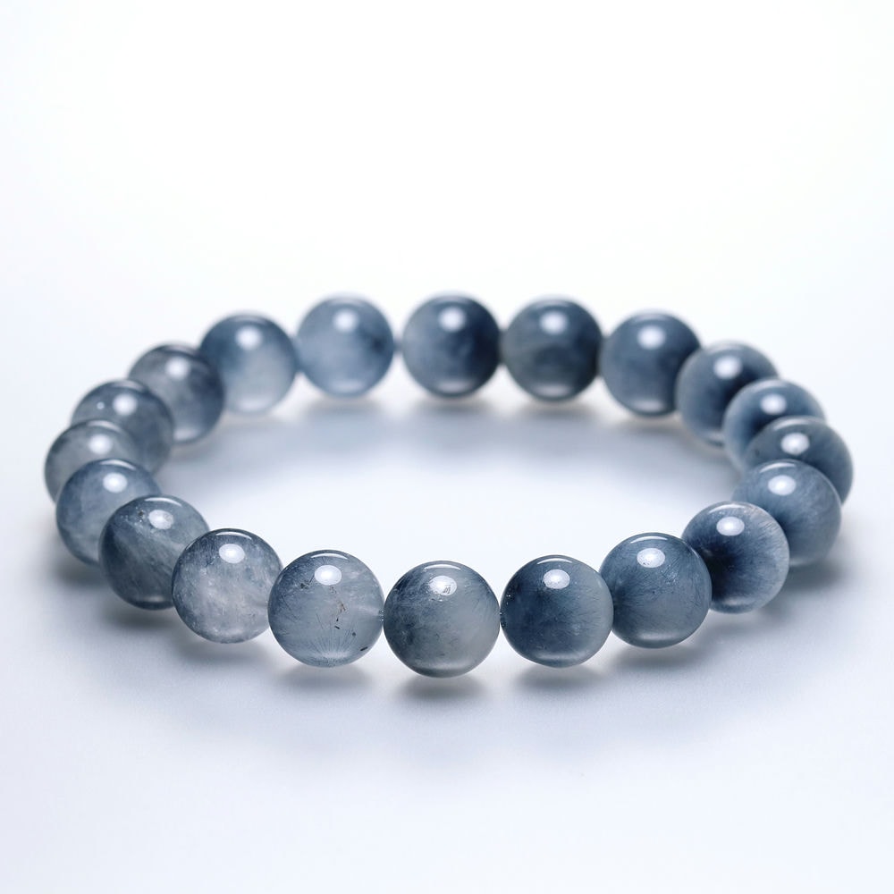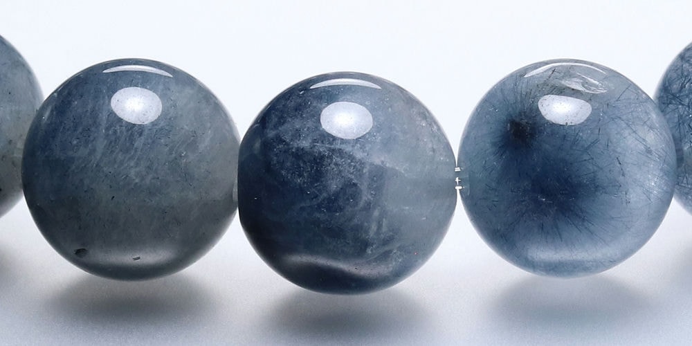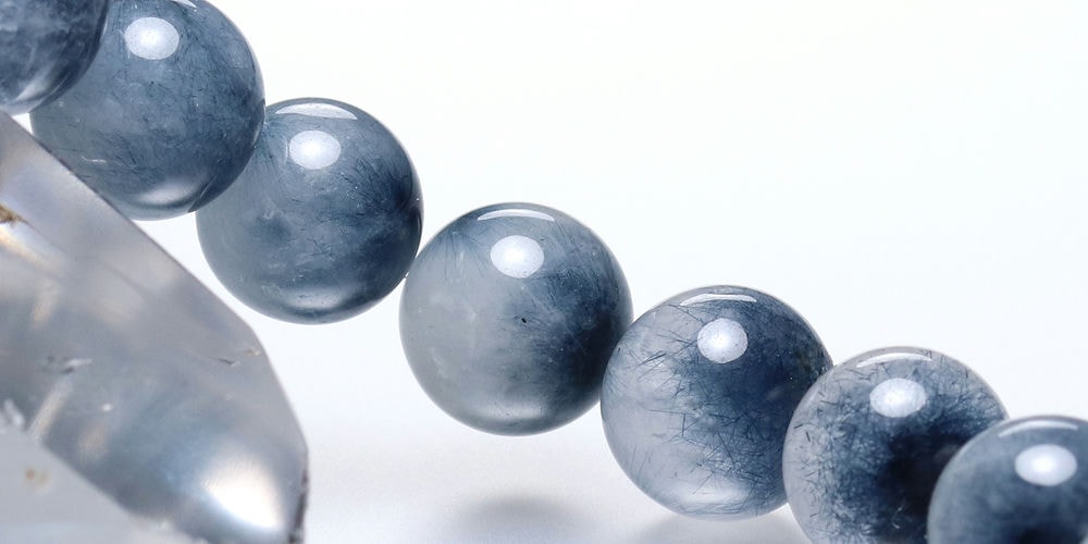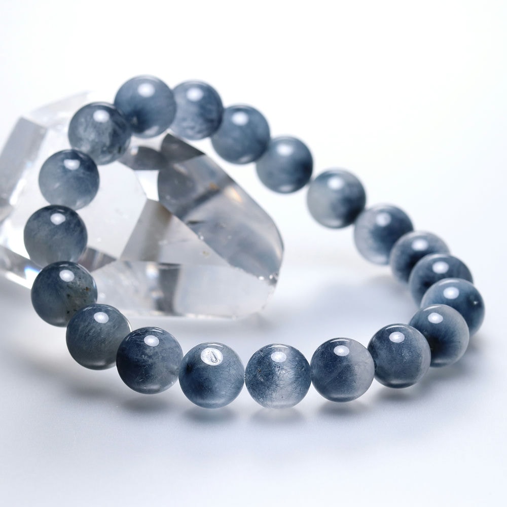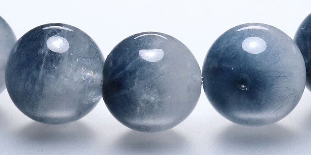 水晶透明度が控えめな点から3A品質としていますが、ブルートルマリンの内包量は申し分なく、ホワイト過ぎず、ブルー過ぎない、絶妙な色合いのバランスが、ブレスレット全体に美しいグラデーションを生み出しています。