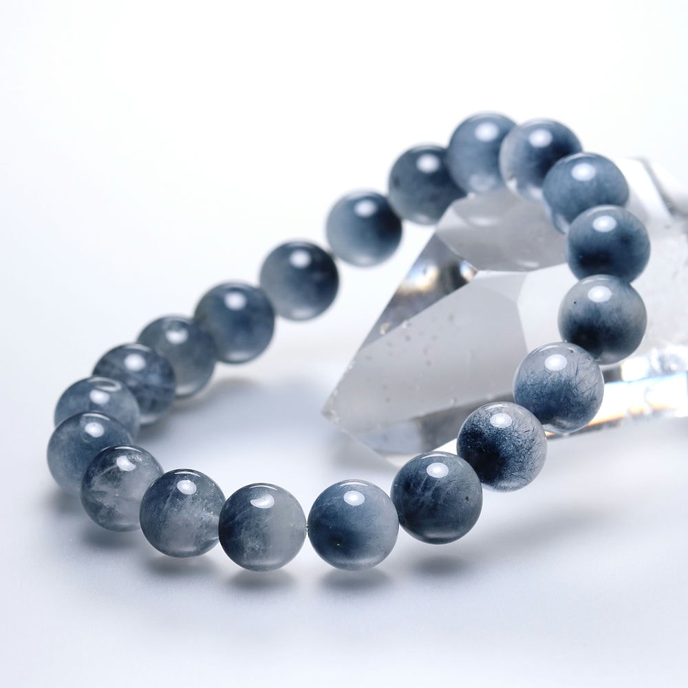 インディゴブルーのトルマリンが水晶に閉じ込められたインクォーツブレスレット