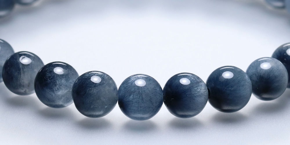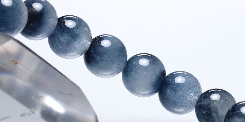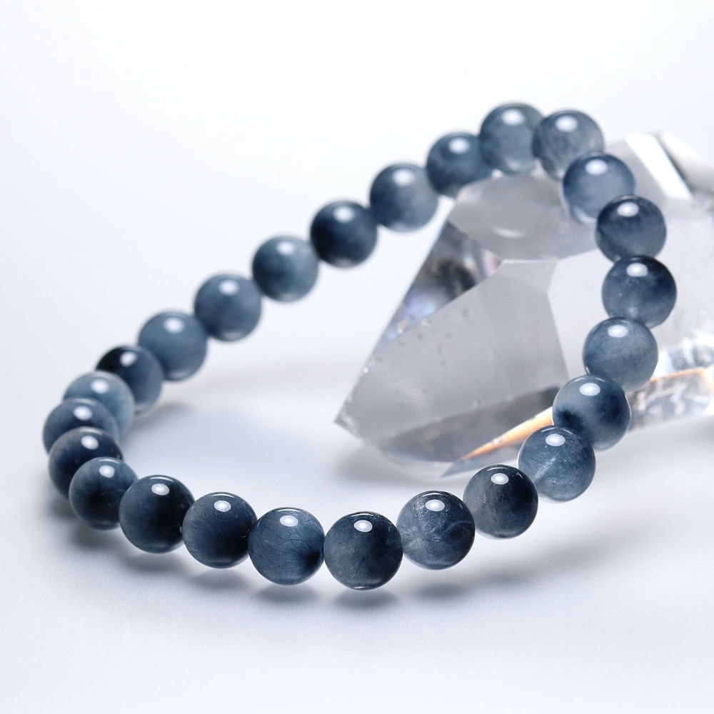 インディゴブルーのトルマリンが水晶に閉じ込められたインクォーツブレスレット
