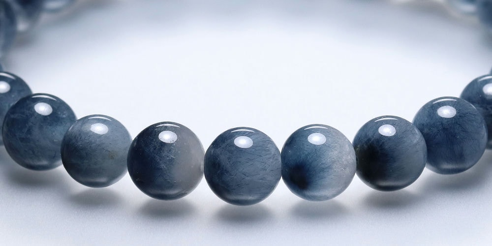 水晶透明度が控えめな点から3A品質としていますが、ブルートルマリンの内包量は申し分なく、ホワイト過ぎず、ブルー過ぎない、絶妙な色合いのバランスが、ブレスレット全体に美しいグラデーションを生み出しています。