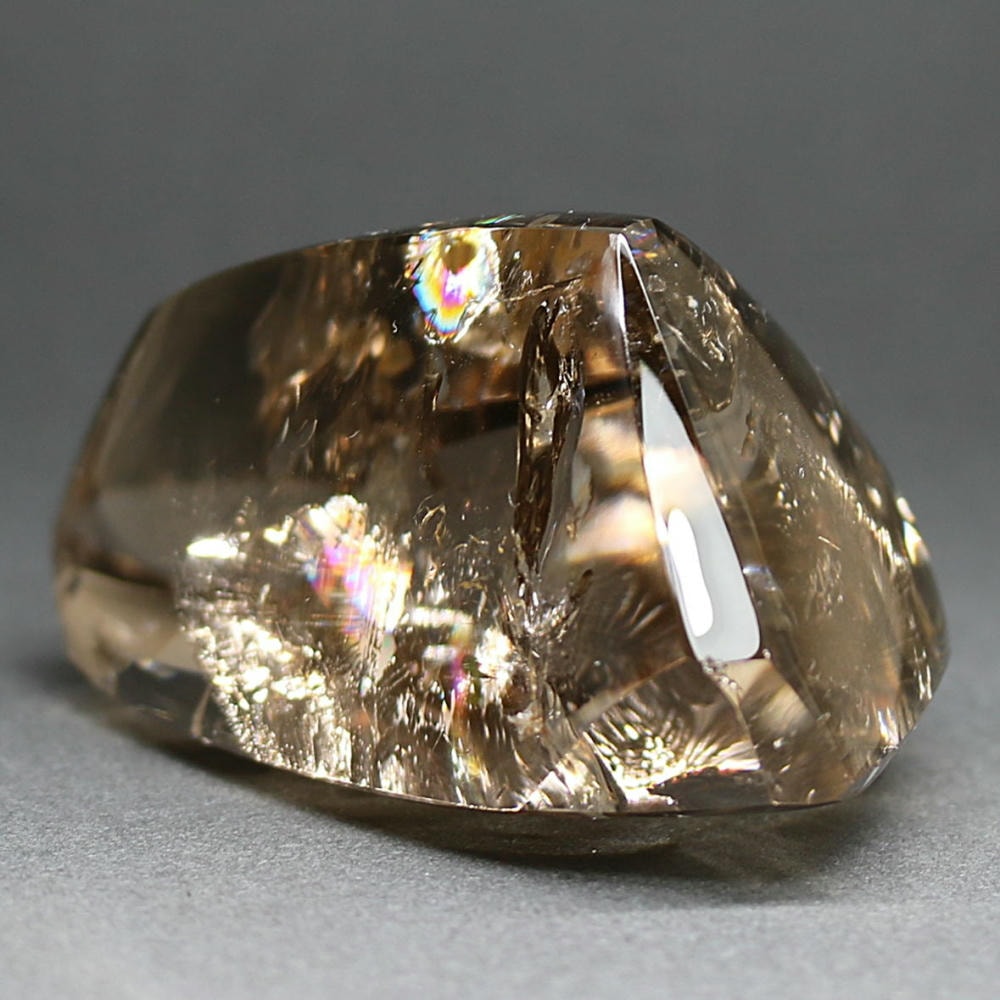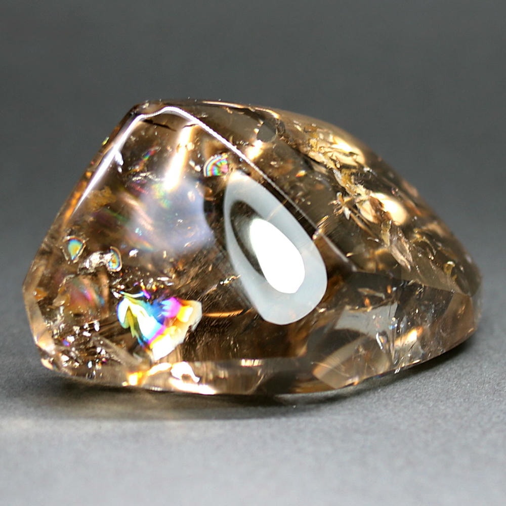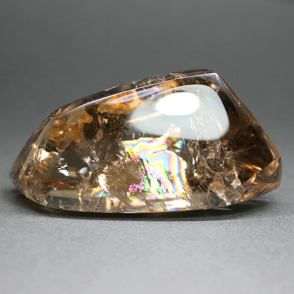 特にご覧のお品は、程良い色合いのスモーキークォーツ(煙水晶)となっており、レインボーとの美しいコントラストをお楽しみいただけます。