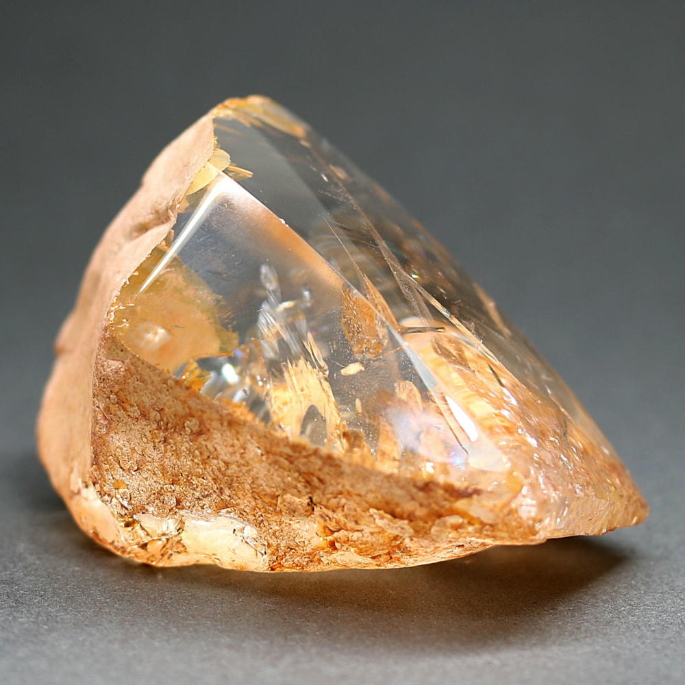 “通称アイリスクォーツ” と呼ばれる「マダガスカル産天然レインボー水晶」を削り磨き上げたフリーフォーム(フリーカット)でございます。
