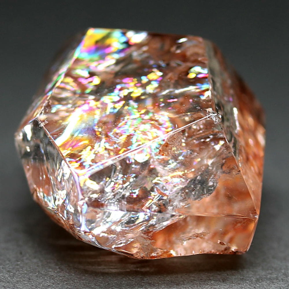熱処理などの温度変化を利用し人為的にクラックを入れた人工レインボー水晶が数多く出回っています。