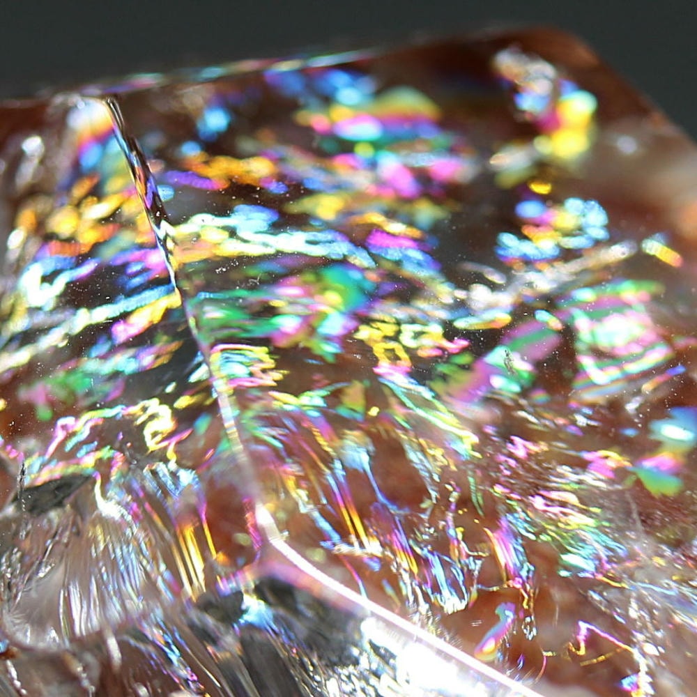 虹が現れる水晶は貴重で、水晶にクラックが入ったものすべてにこのような虹色が出るわけではありません。