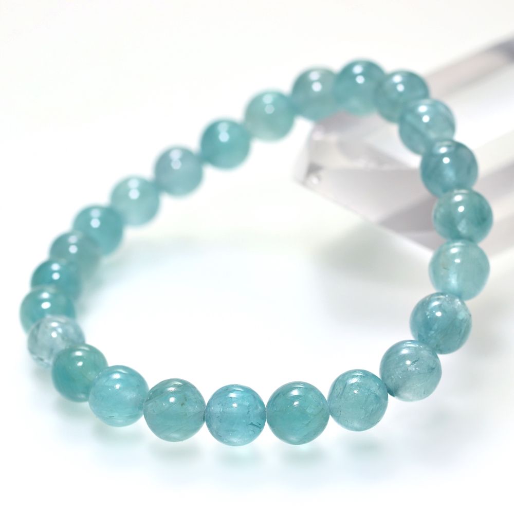 ご覧のお品は、「透明度高く爽やかな発色の粒」を集めて組み上げた、色ムラ少ない大変綺麗な【トップ品質】のブレスレットに仕上がっております。