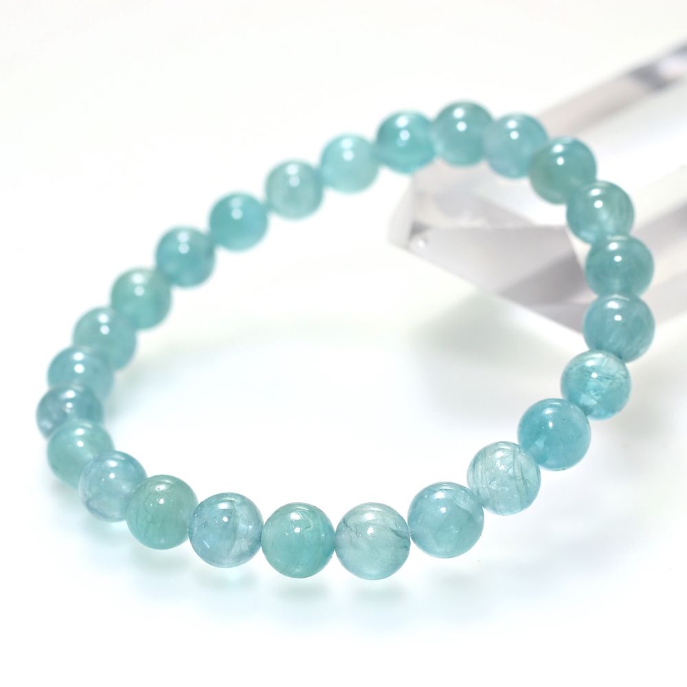 ご覧のお品は、「透明度高く爽やかな発色の粒」を集めて組み上げた、色ムラ少ない非常に綺麗な【トップ品質】のブレスレットに仕上がっております。