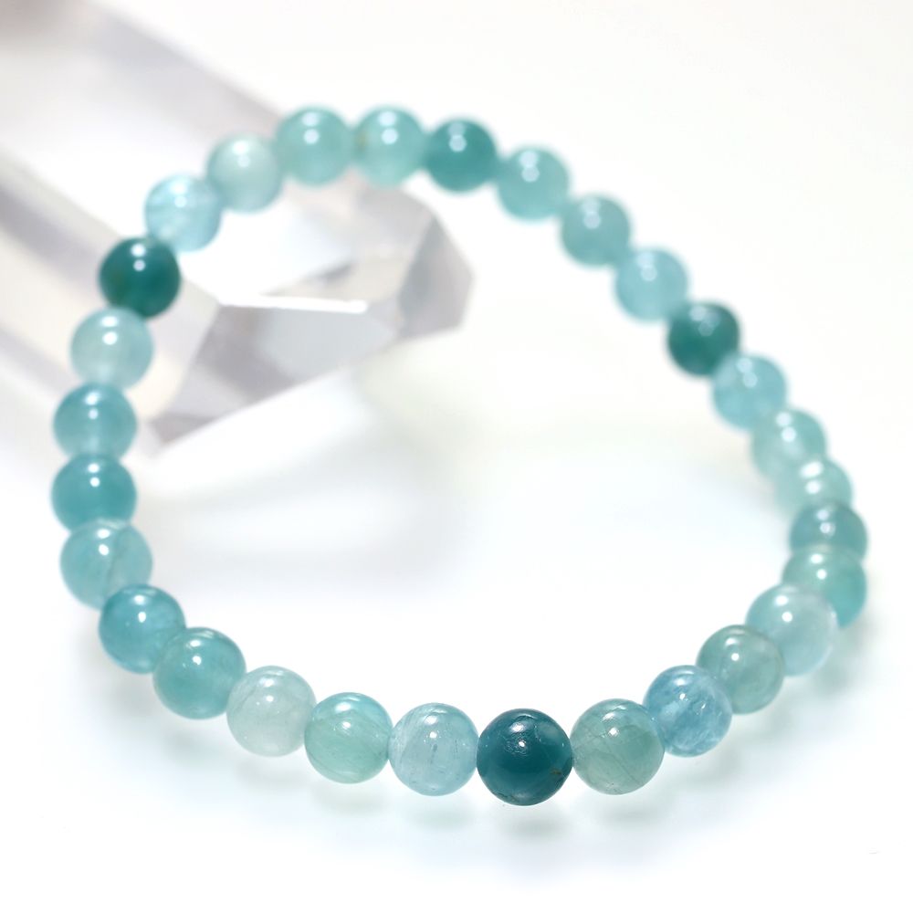 ご覧のお品は「爽やかな色合いの粒」を中心にミックスした、透け感もある美しい【高品質+】ランクのブレスレットに仕上がっております。
