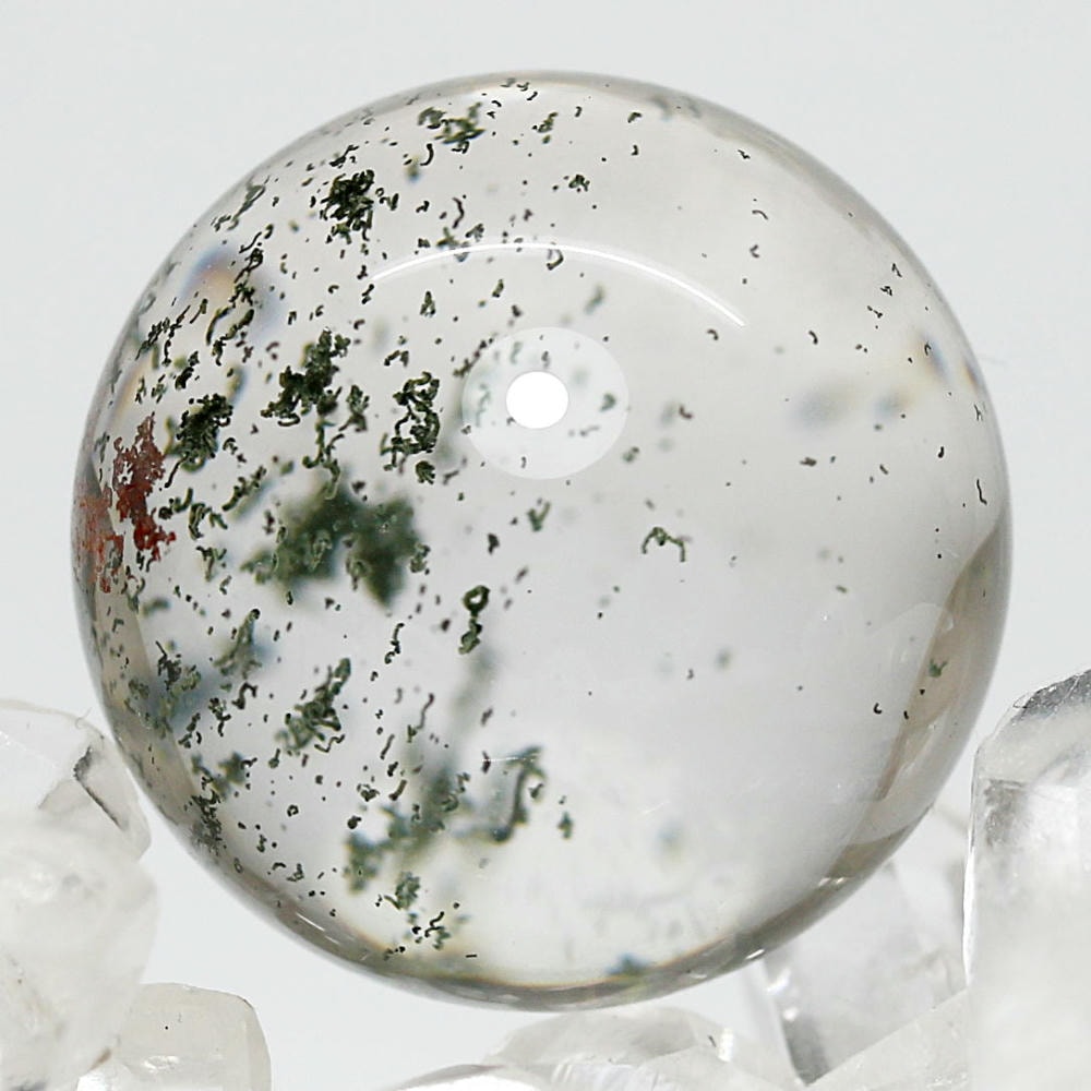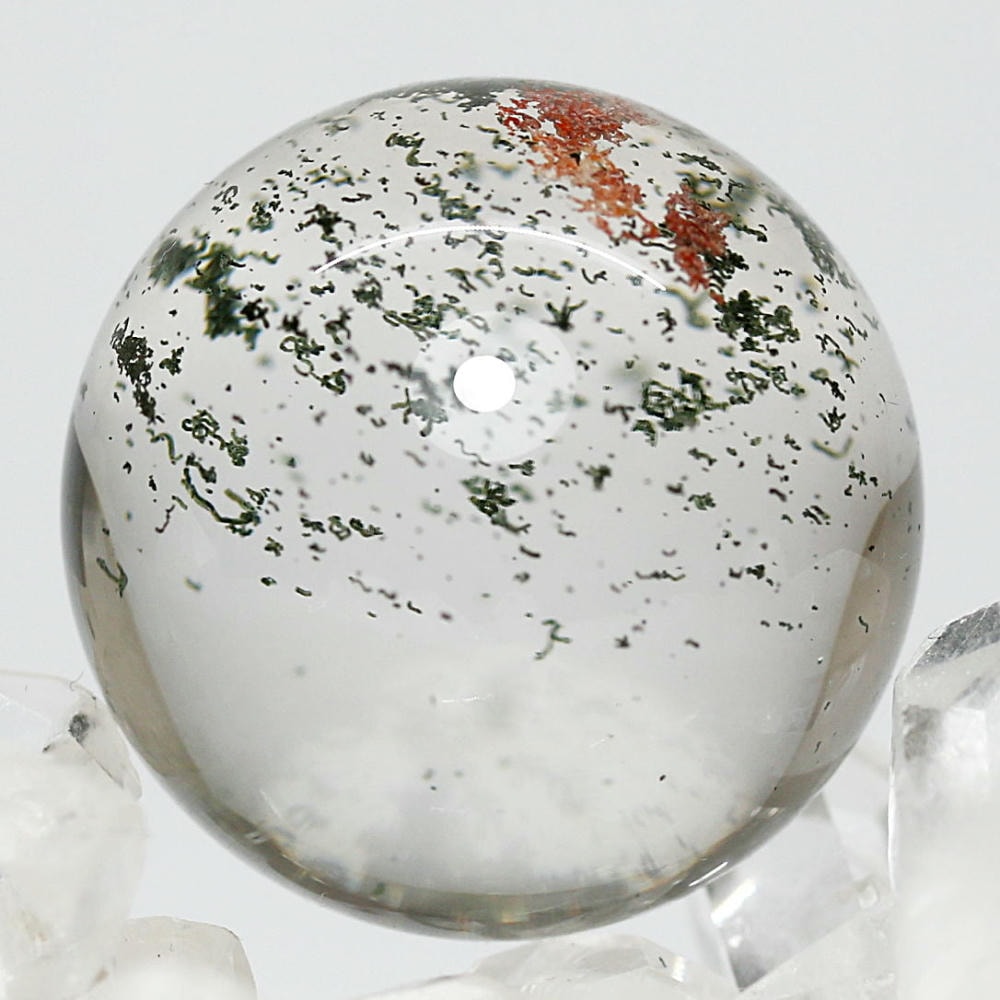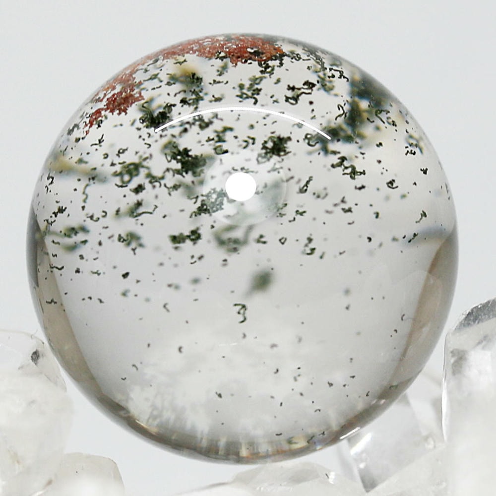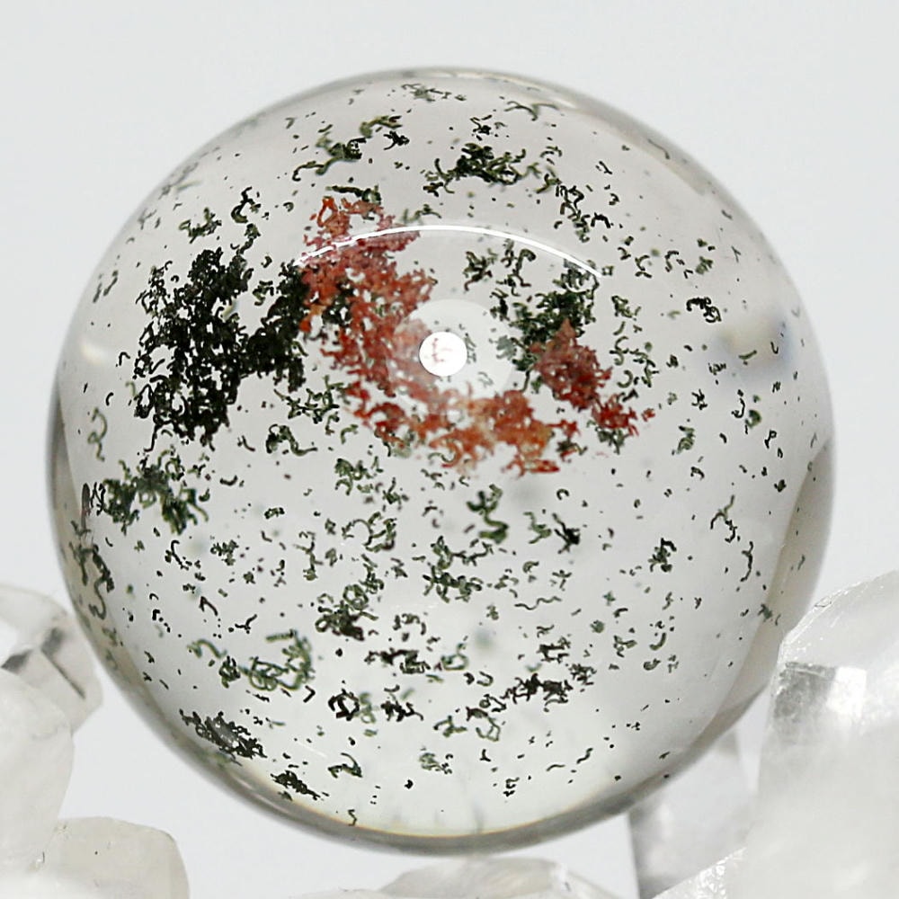 [高品質]ブラジル産ガーデンクォーツ丸玉/庭園水晶スフィア(直径27.2mm/グリーンクローライト&レッド系)¥14,700クイックガイド送料