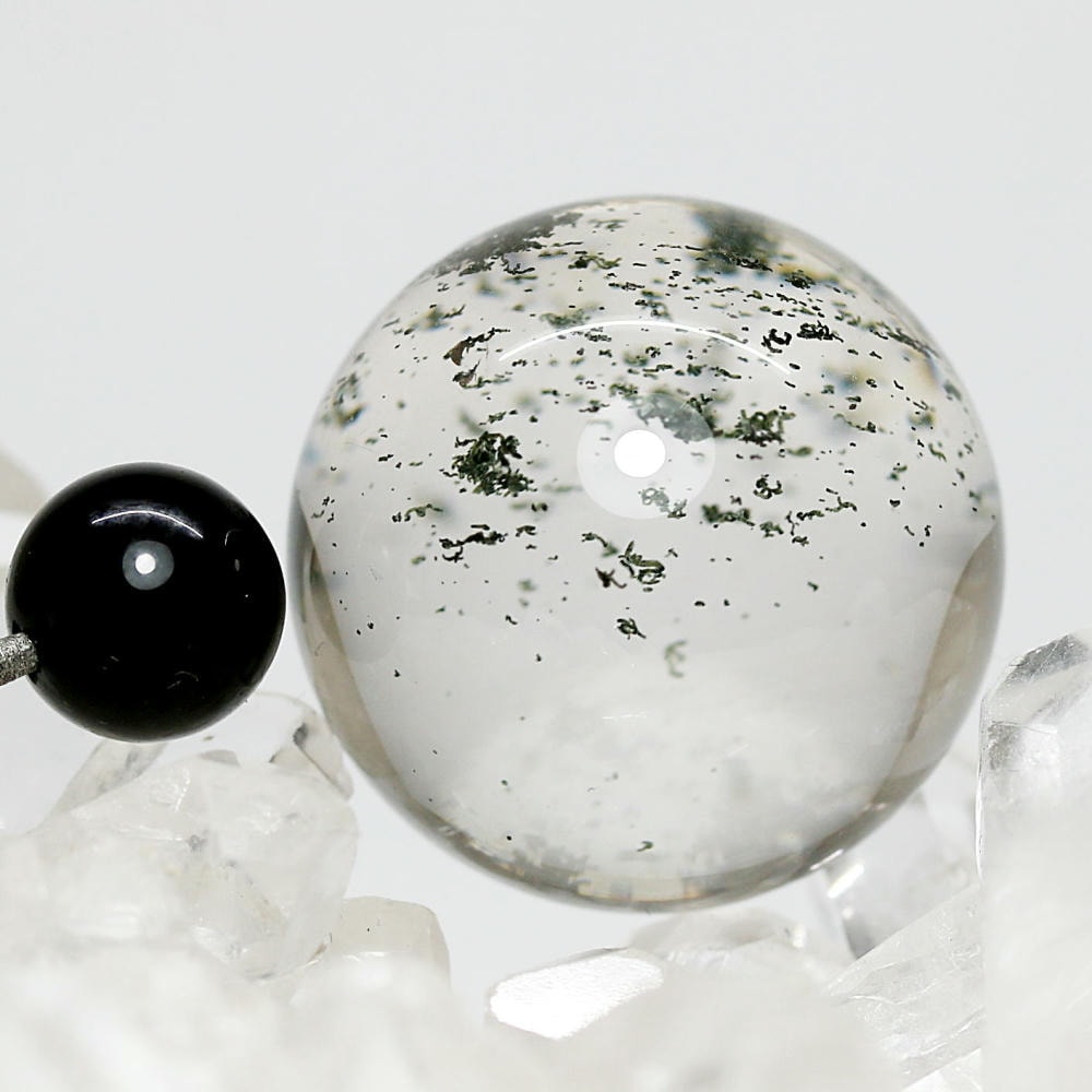 直径2〜3cmほどの小さな水晶玉の内部に、鉱物が閉じ込められたガーデンクォーツ丸玉でございます。