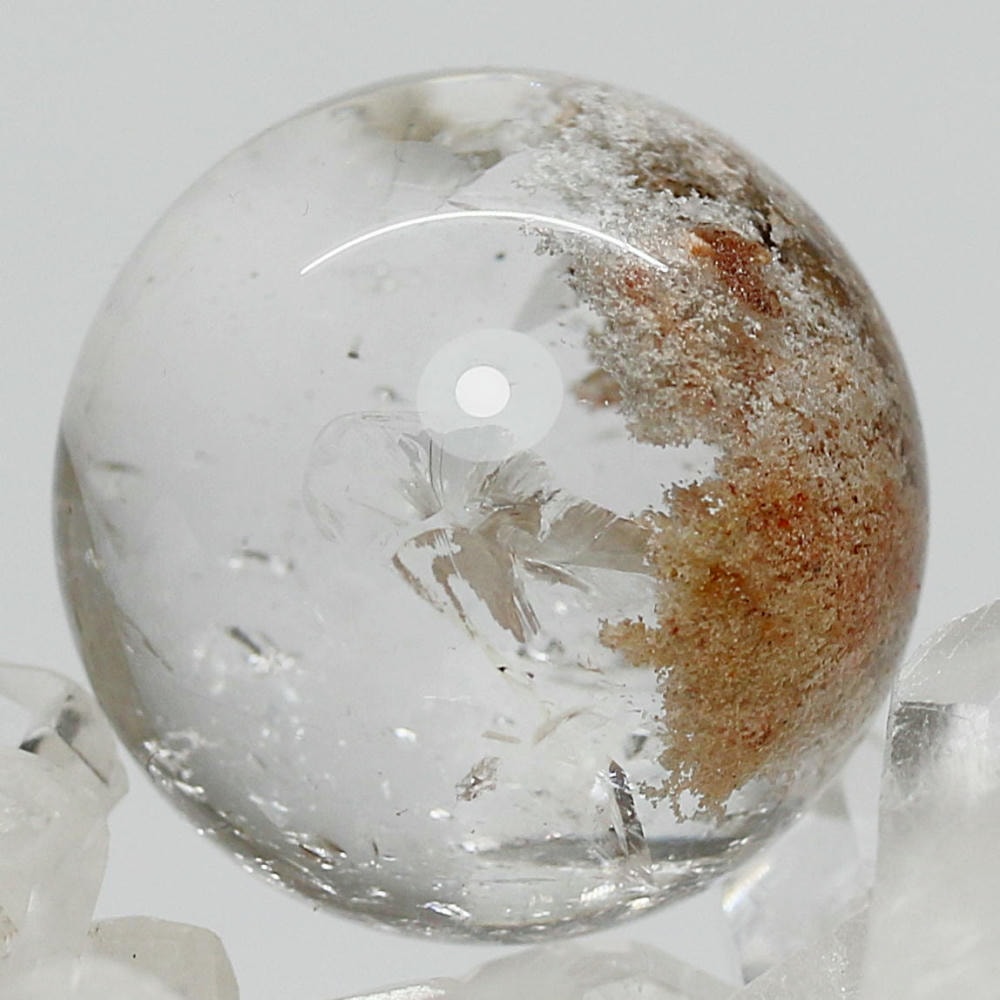 [高品質]ブラジル産ガーデンクォーツ丸玉/庭園水晶スフィア(直径26.7mm/ホワイト&オレンジ系、レインボー!)¥14,000クイックガイド送料