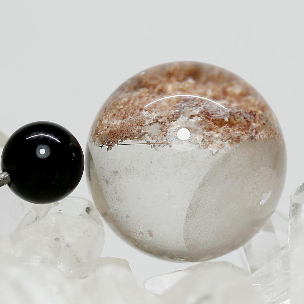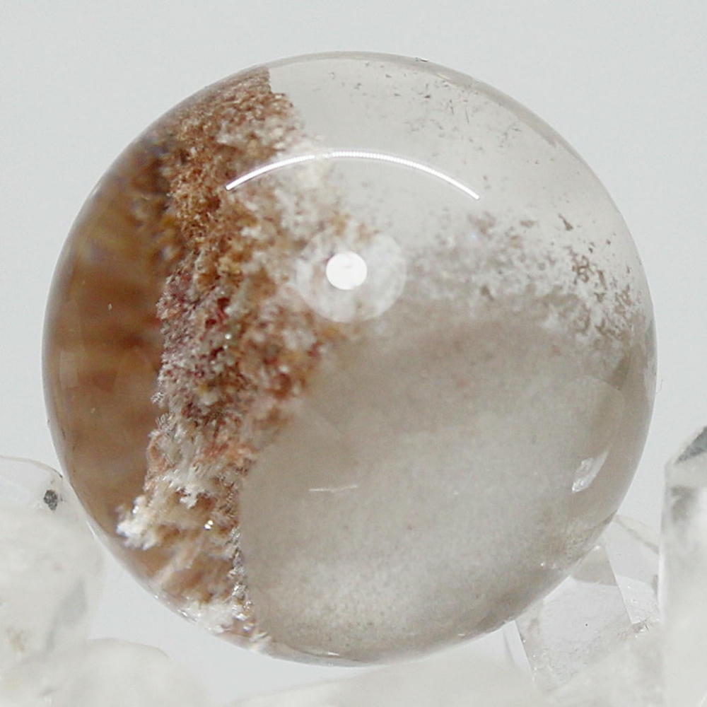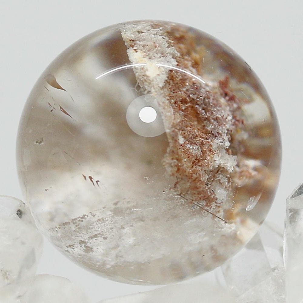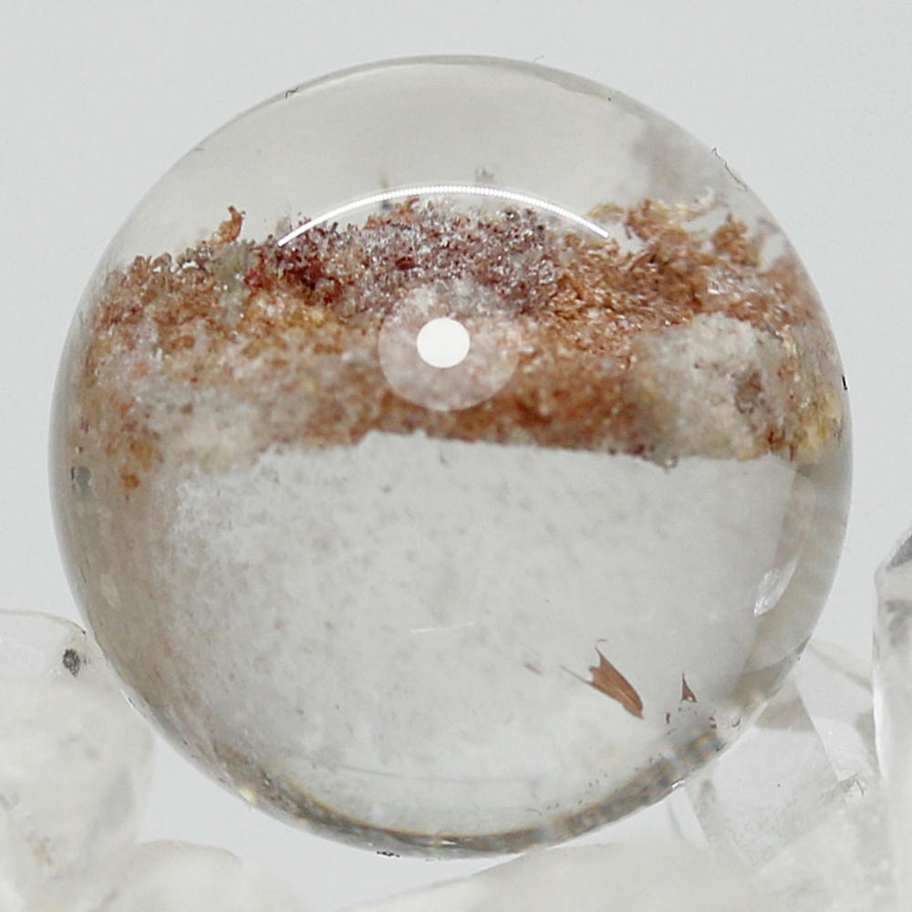 直径2〜3cmほどの小さな水晶玉の内部に、鉱物が閉じ込められたガーデンクォーツ丸玉でございます。