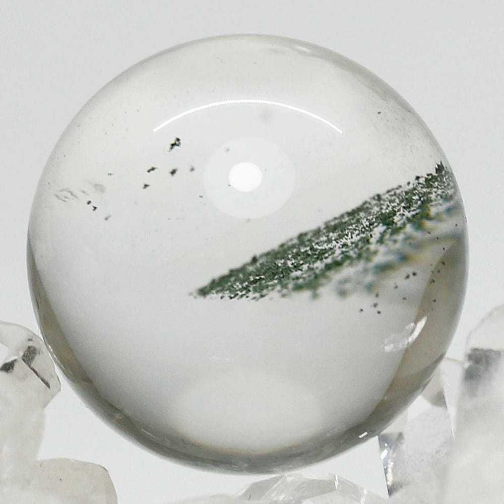 [高品質]ブラジル産ガーデンクォーツ丸玉/庭園水晶スフィア(直径25.3mm/グリーンクローライト系)¥13,200クイックガイド送料