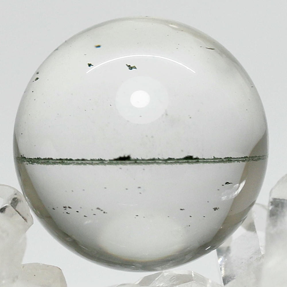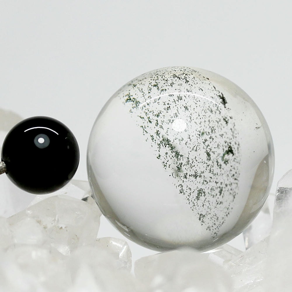 直径2〜3cmほどの小さな水晶玉の内部に、鉱物が閉じ込められたガーデンクォーツ丸玉でございます。
