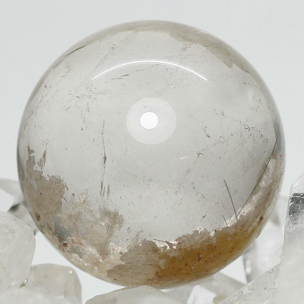 [高品質]ブラジル産ガーデンクォーツ丸玉/庭園水晶スフィア(直径25.1mm・ホワイト系&ルチル針状結晶)