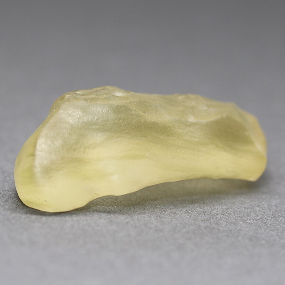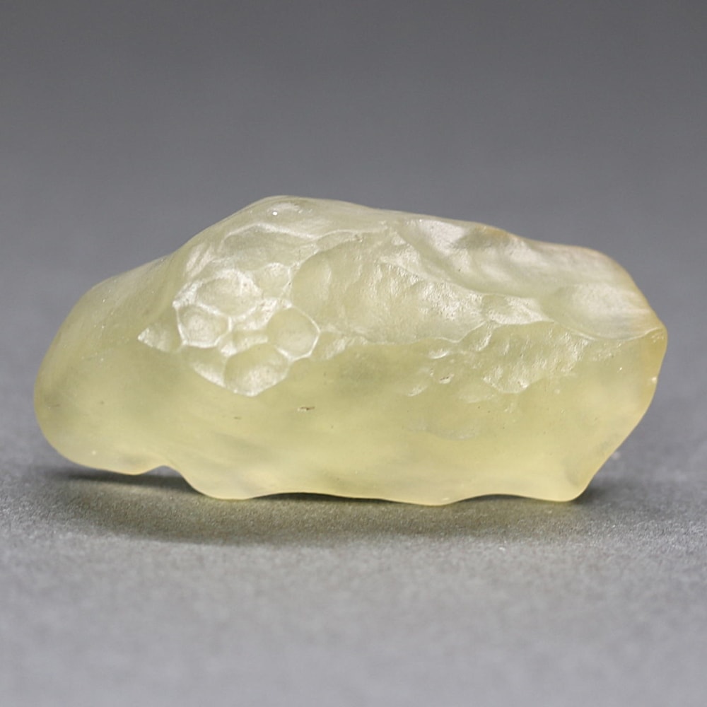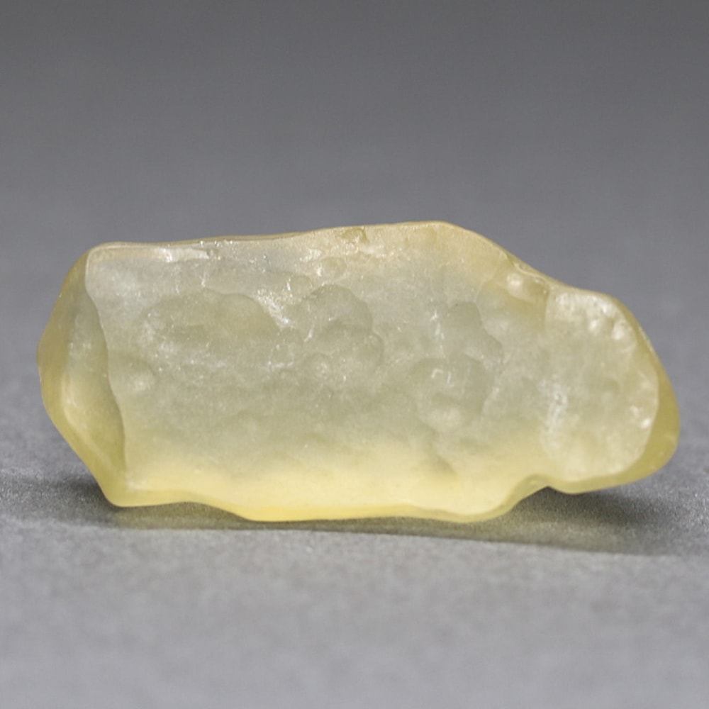 ライトイエローカラーにテクタイト系の鉱物に見られる独特の表面が、眺めるごとに新しい表情を発見させてくれる “天然リビアングラス原石” に、つい見惚れてしまいます。