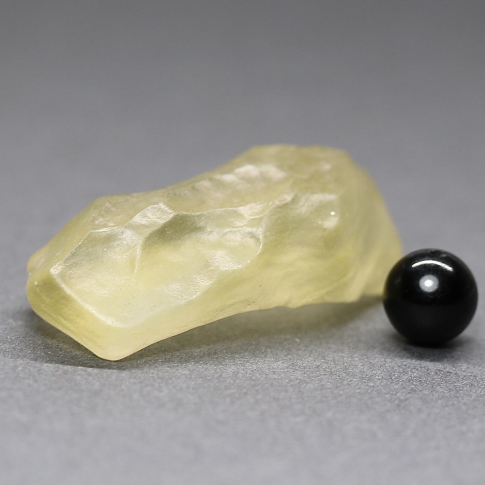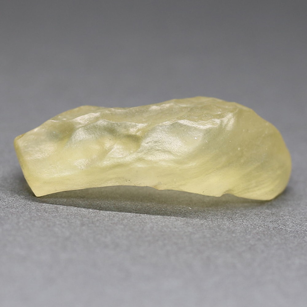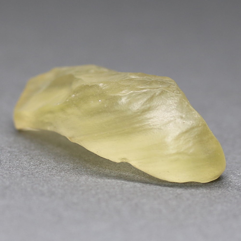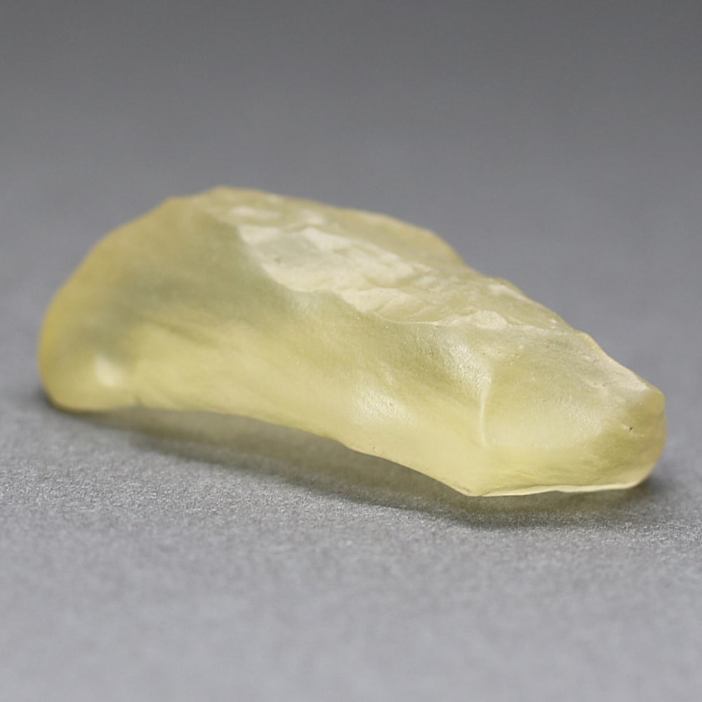 ライトイエローカラーにテクタイト系の鉱物に見られる独特の表面が、眺めるごとに新しい表情を発見させてくれる “天然リビアングラス原石” に、つい見惚れてしまいます。