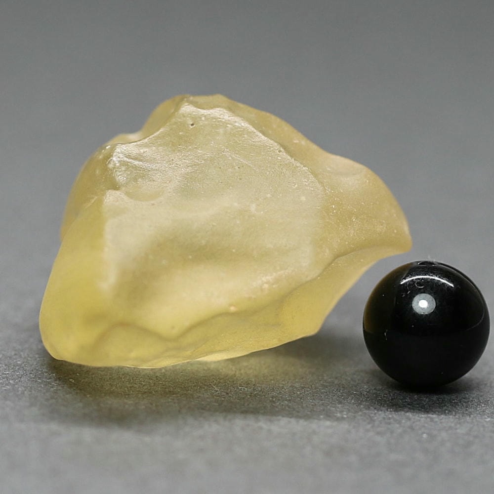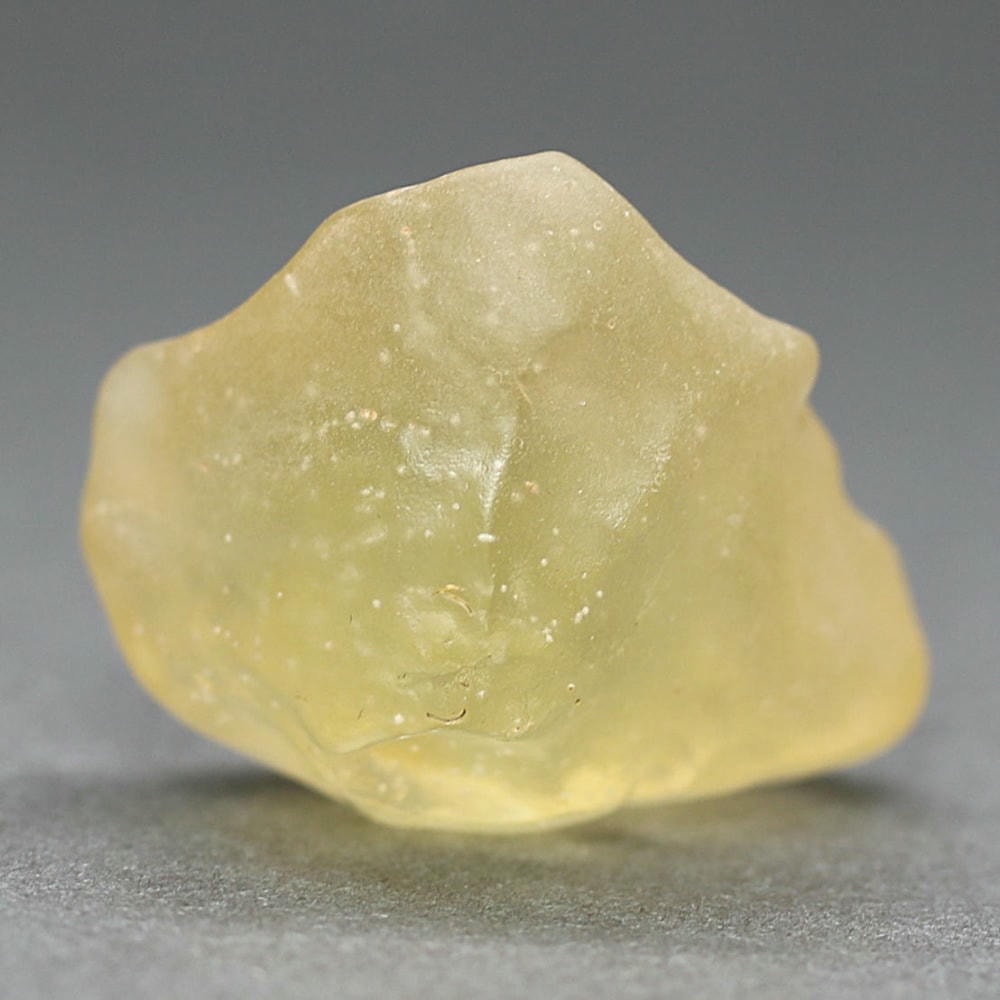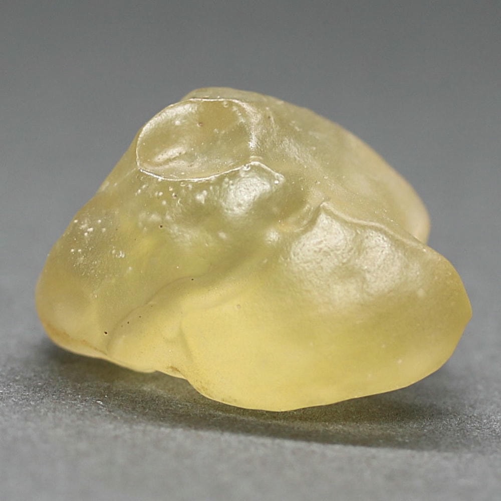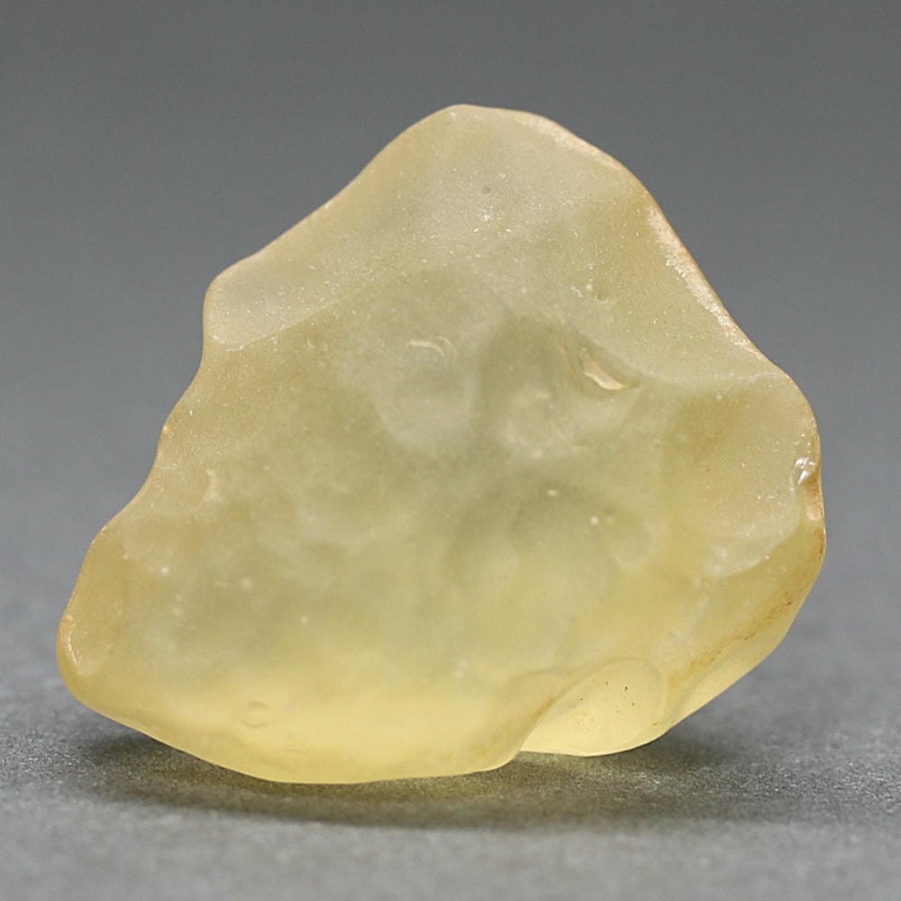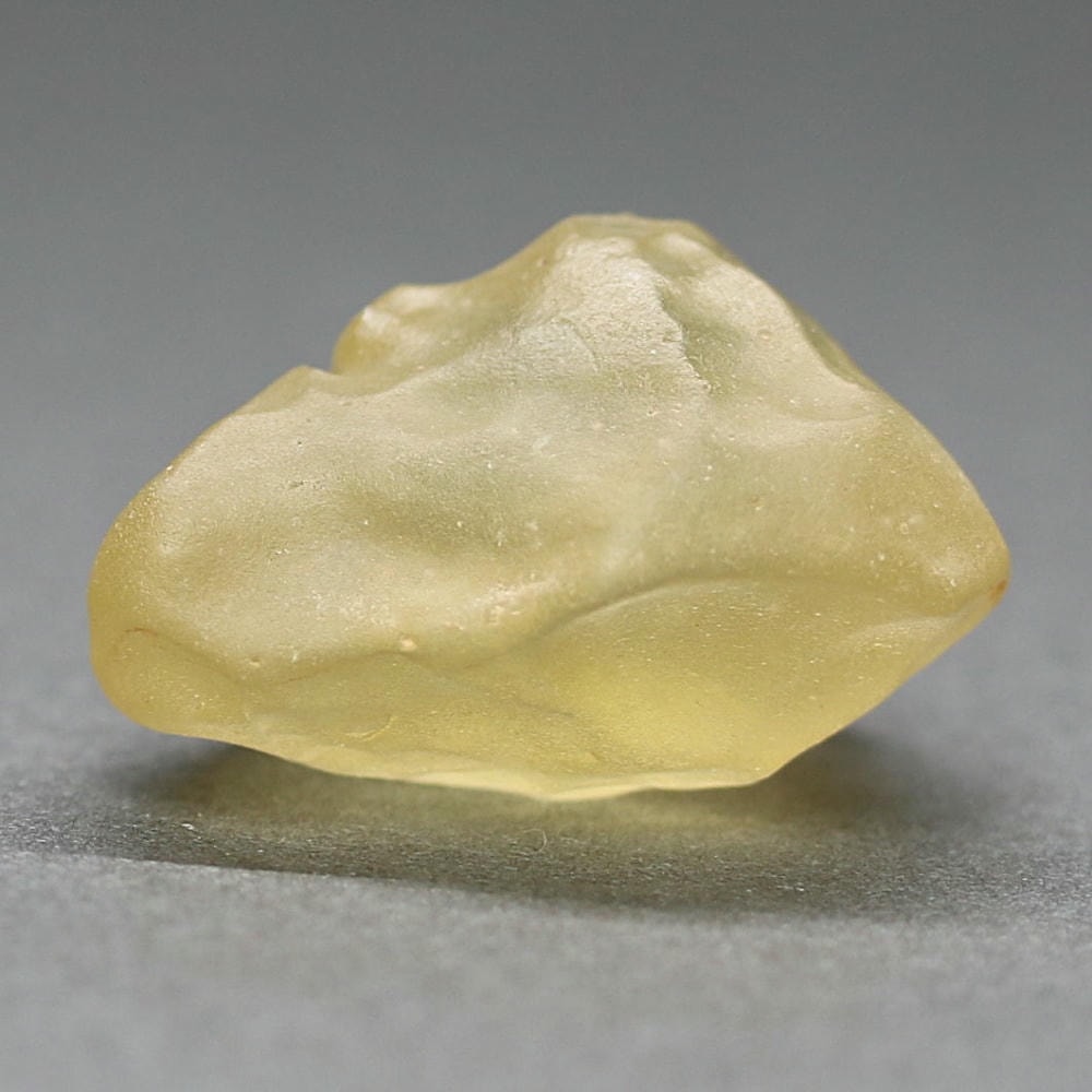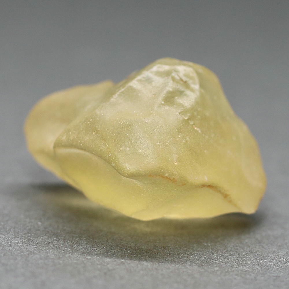ライトイエローカラーにテクタイト系の鉱物に見られる独特の表面が、眺めるごとに新しい表情を発見させてくれる “天然リビアングラス原石” に、つい見惚れてしまいます。