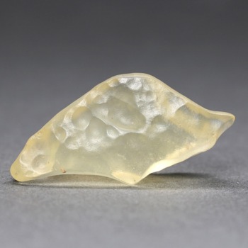ライトイエローカラーにテクタイト系の鉱物に見られる独特の表面が、眺めるごとに新しい表情を発見させてくれる “天然リビアングラス原石” に、つい見惚れてしまいます。