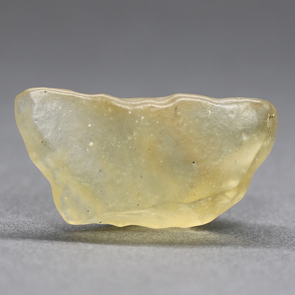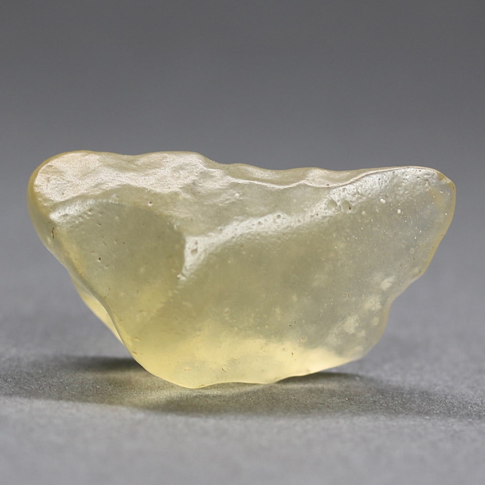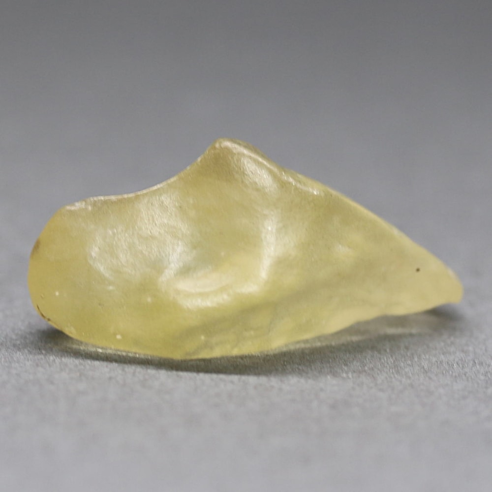 ライトイエローカラーにテクタイト系の鉱物に見られる独特の表面が、眺めるごとに新しい表情を発見させてくれる “天然リビアングラス原石” に、つい見惚れてしまいます。