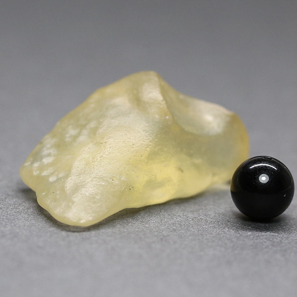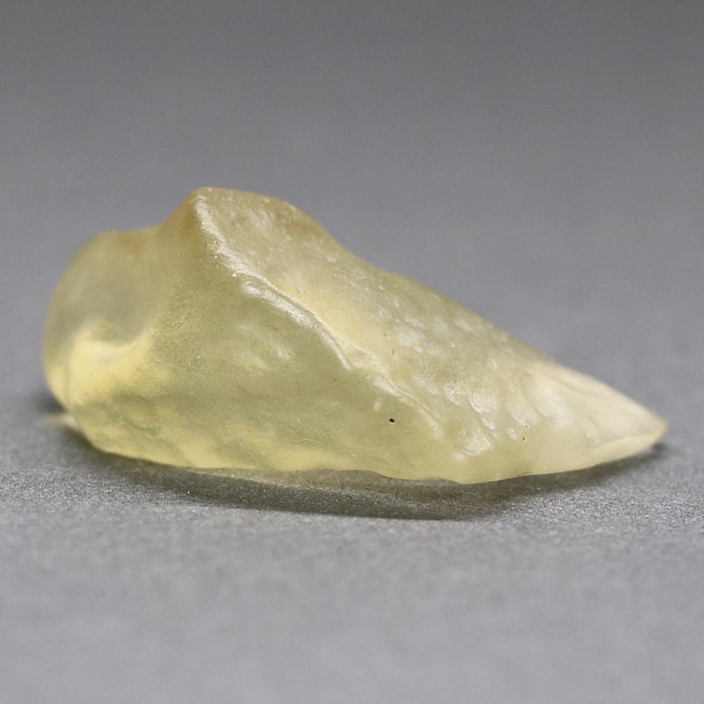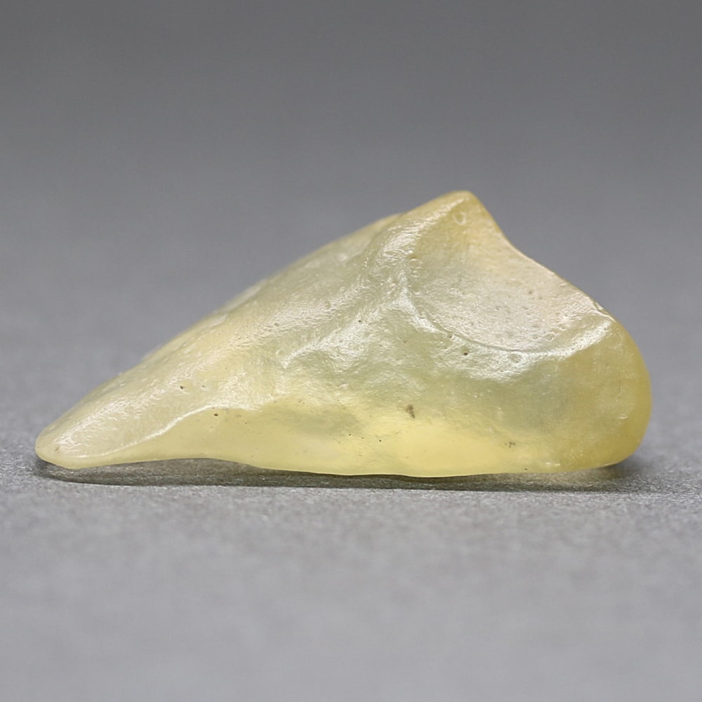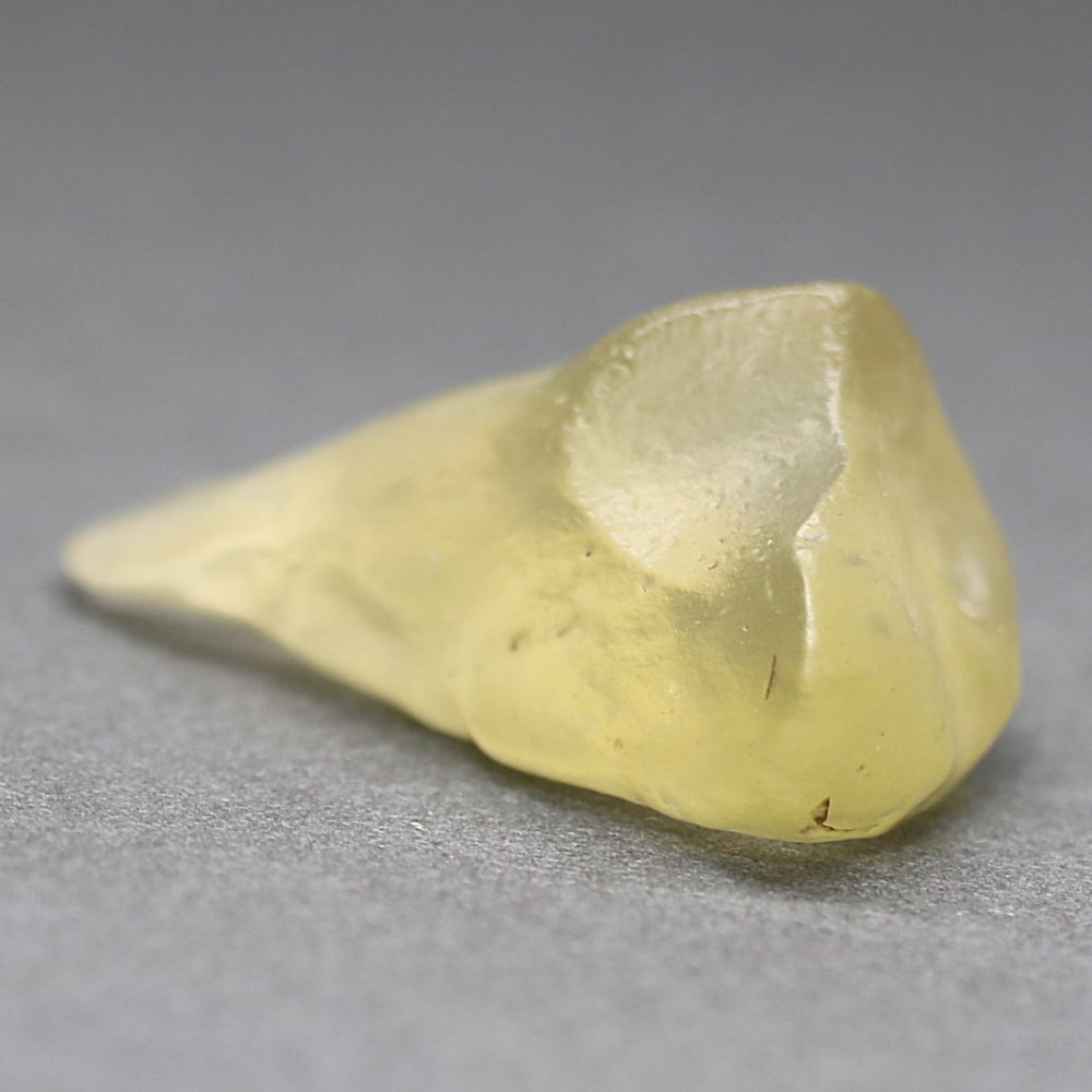 ライトイエローカラーにテクタイト系の鉱物に見られる独特の表面が、眺めるごとに新しい表情を発見させてくれる “天然リビアングラス原石” に、つい見惚れてしまいます。