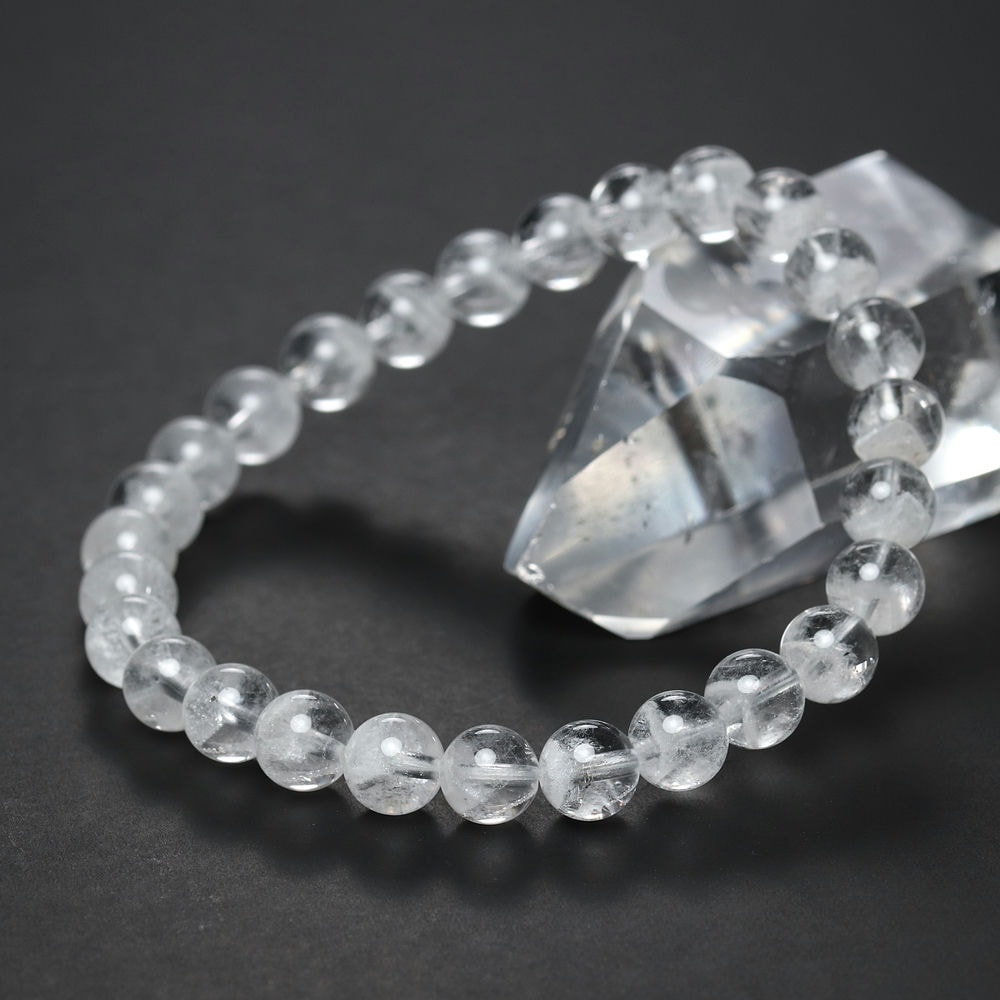 幻想的な “雪山” を魅せてくれるスノーホワイトファントムクォーツブレスレット透明水晶に、白い層が “雪山のように” 内包された美しいホワイトファントムクォーツブレスレットでございます。 幻影水晶と呼ばれるファントムクォーツは、長い年月を経て水晶が成長と停止を繰り返し形成されていく過程で、別の物質や鉱物が山成りに見えるインクルージョンとして水晶内部に閉じ込められることがあります。 透明度高い水晶に美しいファントム!ご覧のお品は、透明度高い水晶にスノーホワイトの内包物(白泥石やトレモナイトなど)が綺麗に見られるクオリティー高いビーズを集めて作製されたブレスレットです。 品質が悪いものですと、黄色く濁っていたり不純物によって綺麗でなかったりしますので、“雪原のように真っ白” なファントムは高い品質価値があります。 ファントムが綺麗に見える原石を割れないようビーズ加工するのは大変難しく、相当の原石を用意して大量にビーズを作らなければ組み上げることすら叶いません。 何千、何万年掛けて自然界が作り上げた芸術的な水晶ブレスレットを是非この機会にご堪能くださいませ! 心を癒し、困難を乗り越える守護石としても人気ファントムクォーツには「成長・前進」の意味合いがあり、人生の困難や壁を乗り越え目標達成へ導き、商運や金運・財運をアップさせる御守りとしても大変人気があります。 価値ある希少ブレスレットとして、勇気をくれる御守りブレスレットとして、どうぞご愛用くださいませ☆ 関連商品カテゴリ商品イメージ関連商品カテゴリ最近チェックした商品スノーホワイトファントムクォーツ関連商品ブレスレット関連商品