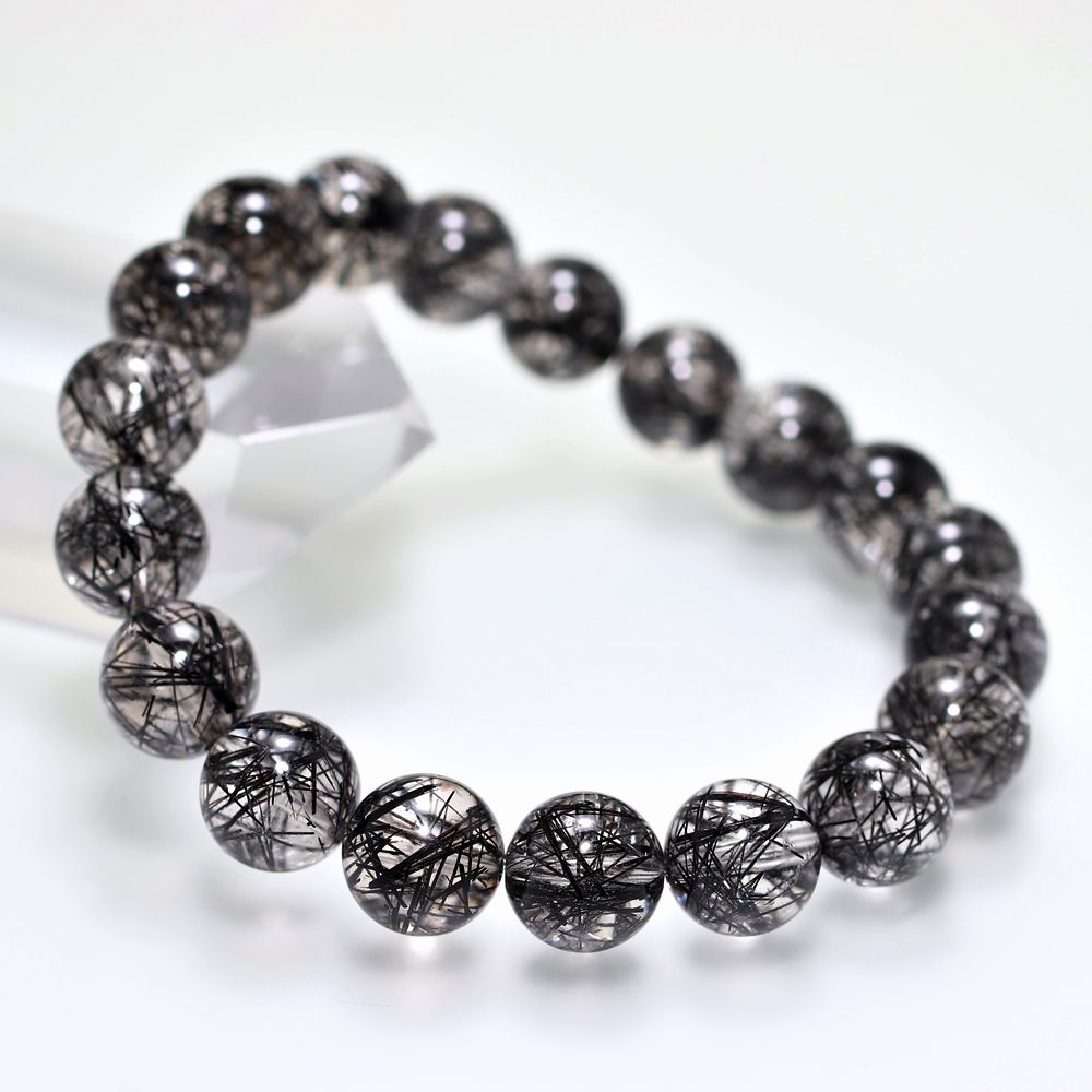 [高品質++]ブラックトルマリンインクォーツブレスレット(約10.5mm玉)
