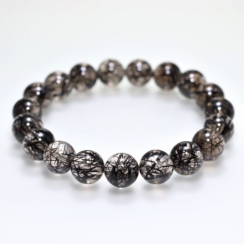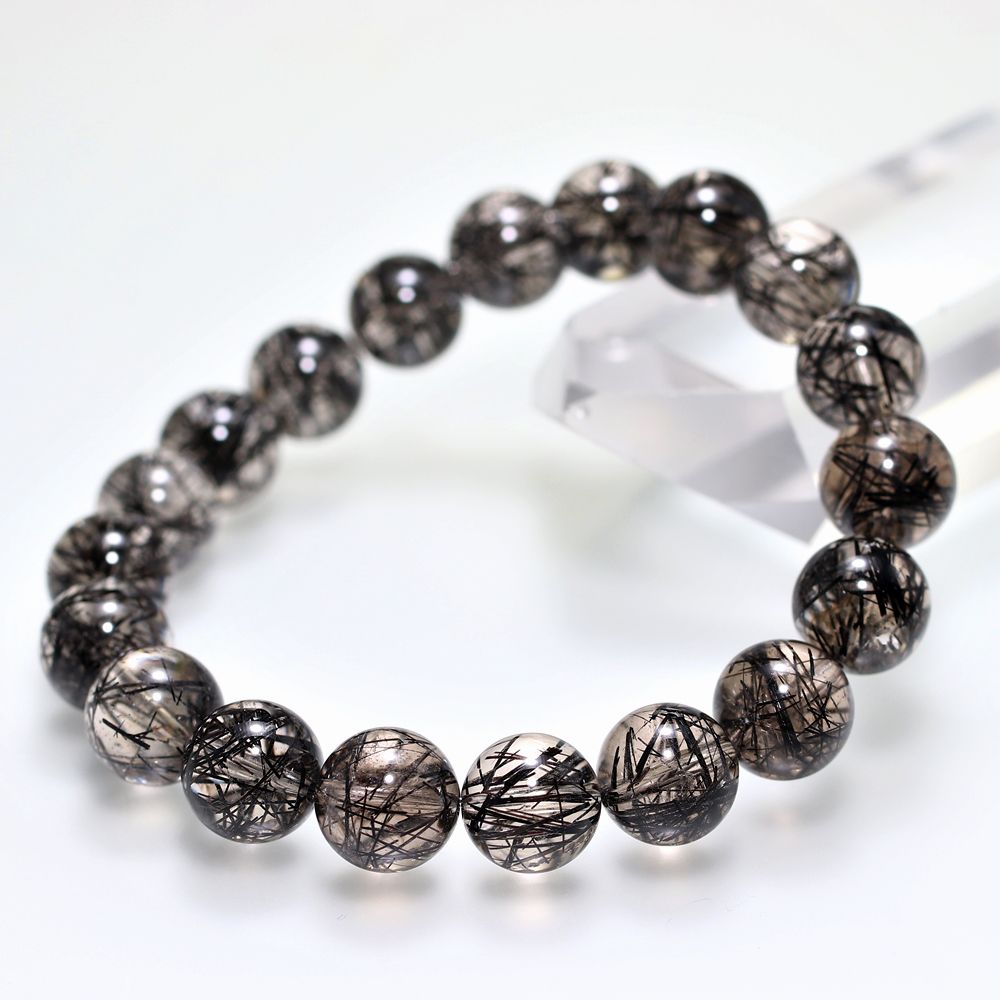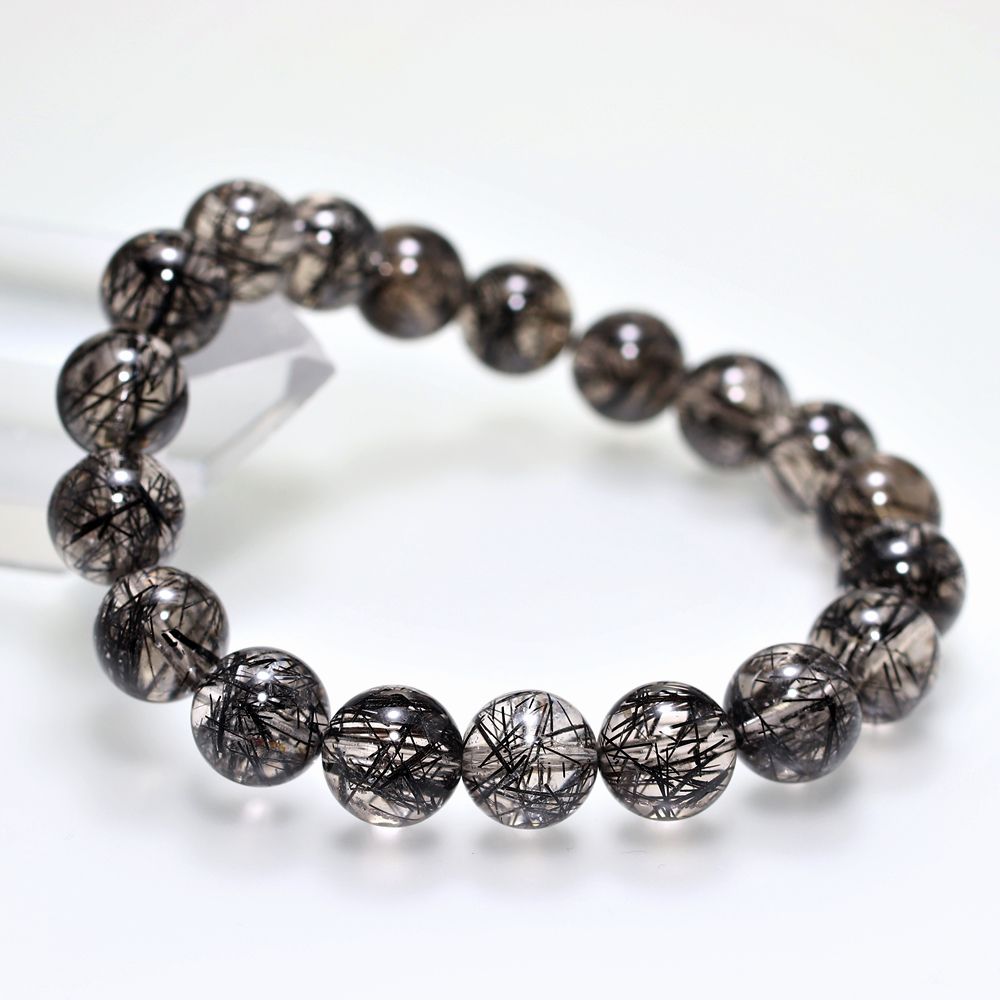 [高品質+]ブラックトルマリンインクォーツブレスレット(約10mm玉)¥51,000クイックガイド送料
