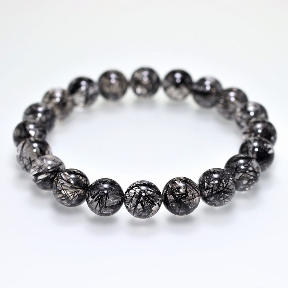 [高品質+]ブラックトルマリンインクォーツブレスレット(約10mm玉)