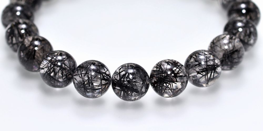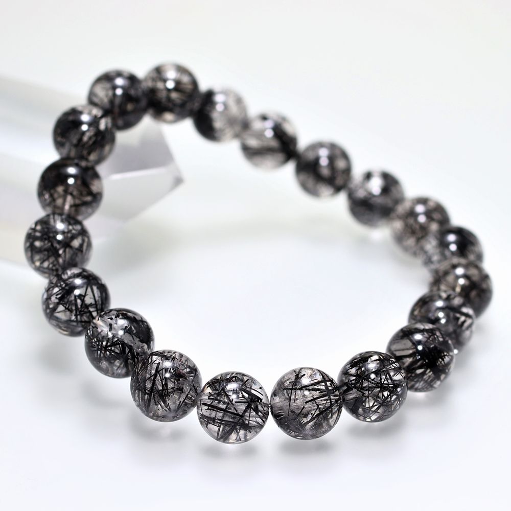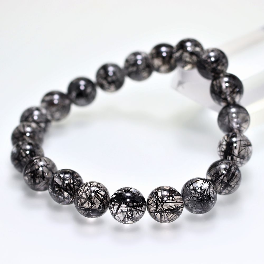 [高品質+]ブラックトルマリンインクォーツブレスレット(約10mm玉)¥41,000クイックガイド送料