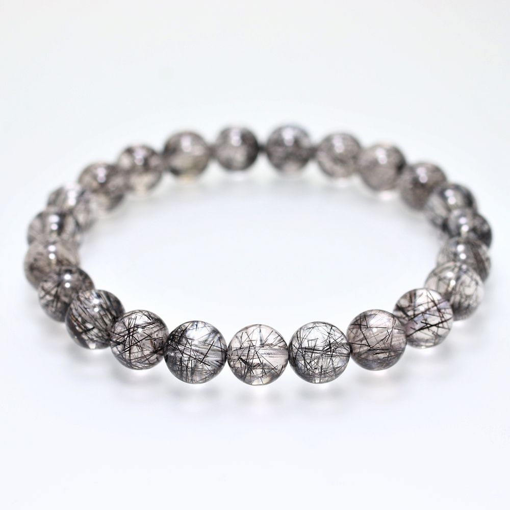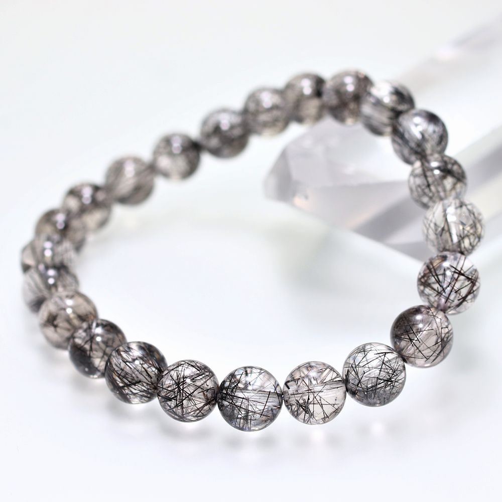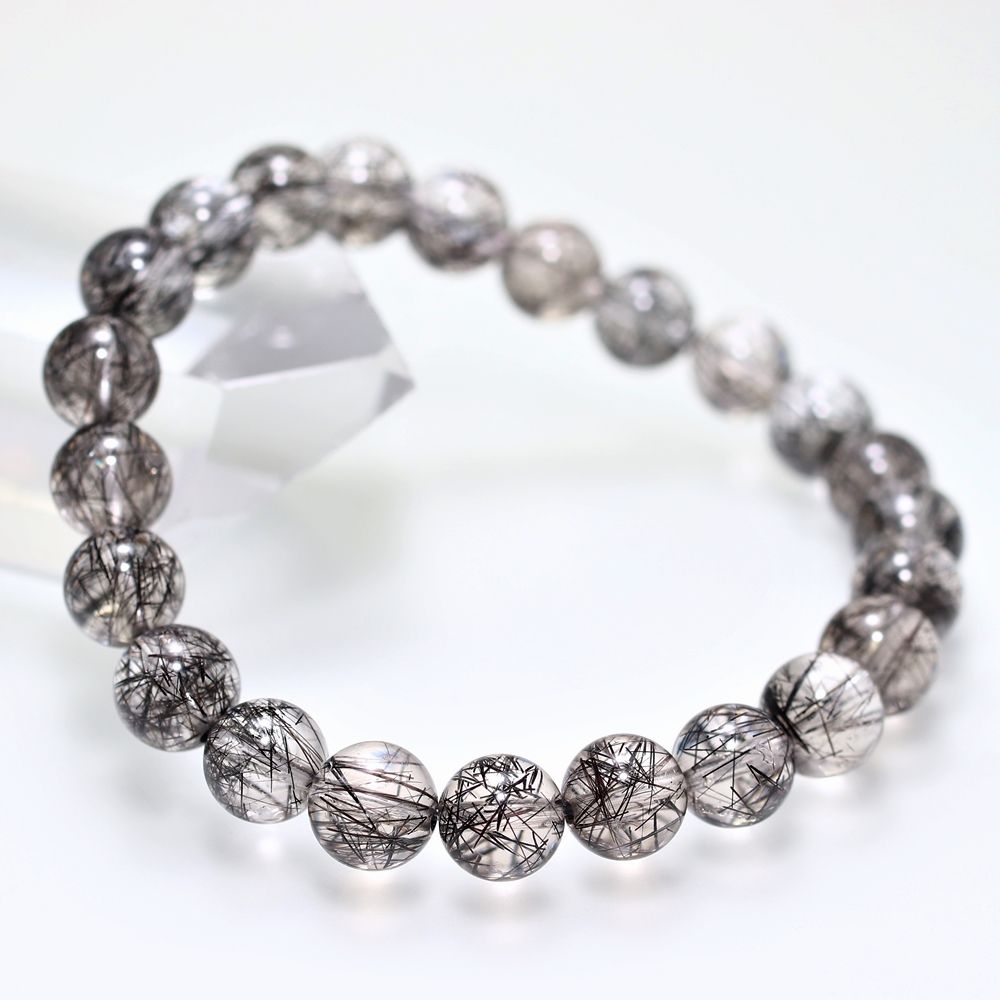 [高品質+]ブラックトルマリンインクォーツブレスレット(約8mm玉)