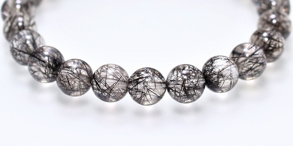 針状結晶がインクルージョンされた【高品質+】ブラックトルマリンインクォーツブレスレットでございます。