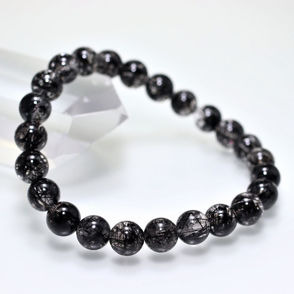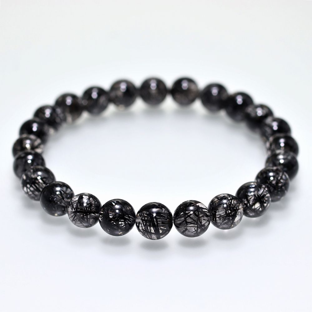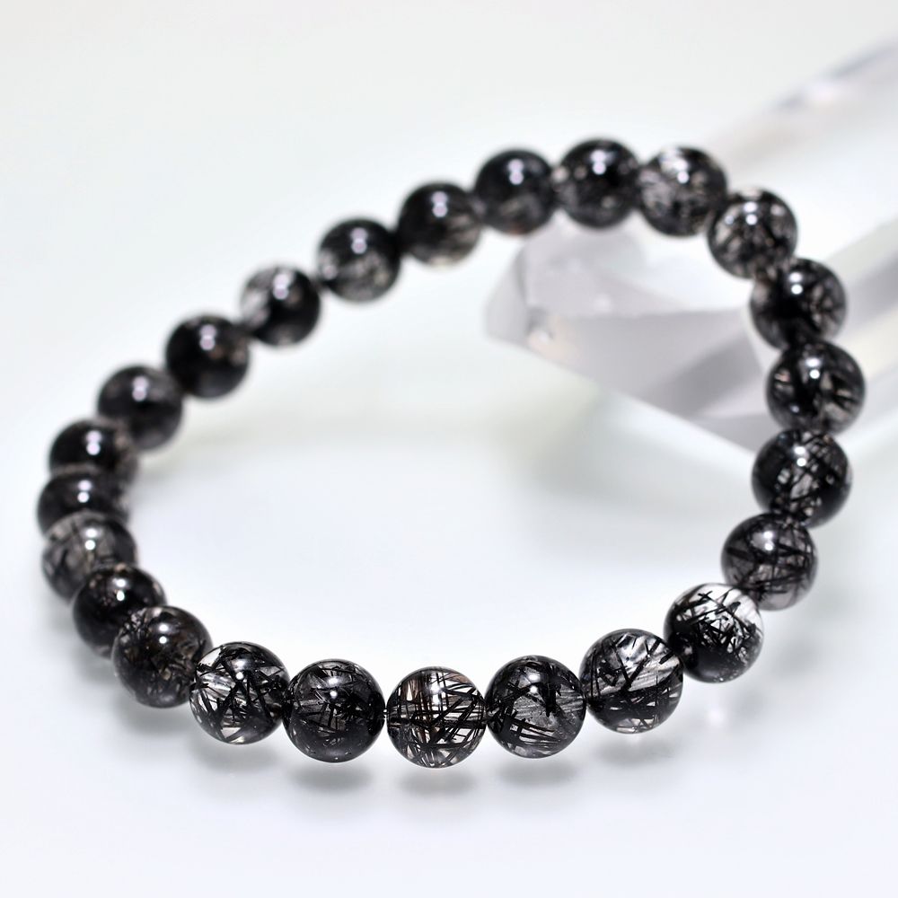針状結晶がインクルージョンされた【高品質++】ブラックトルマリンインクォーツブレスレットでございます。