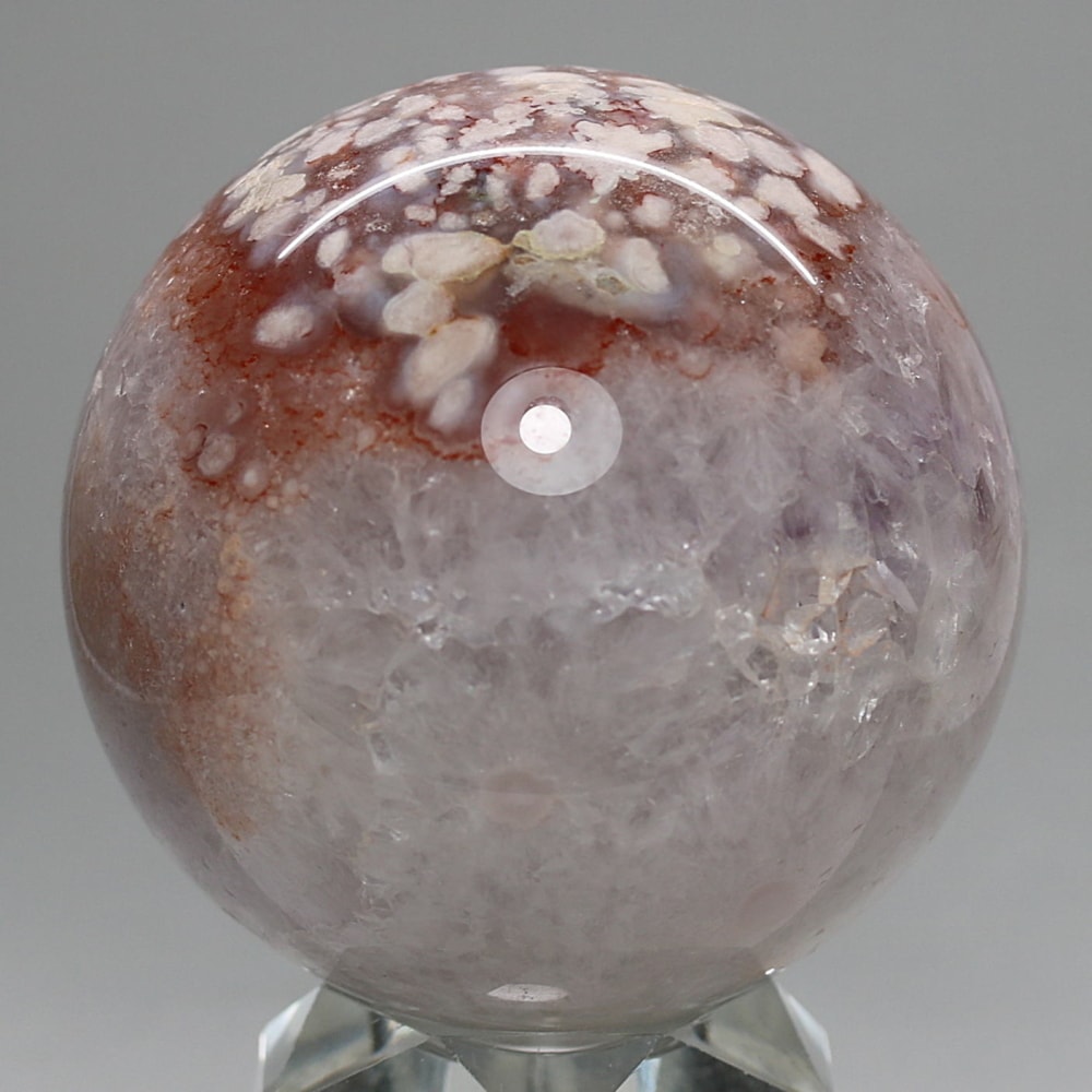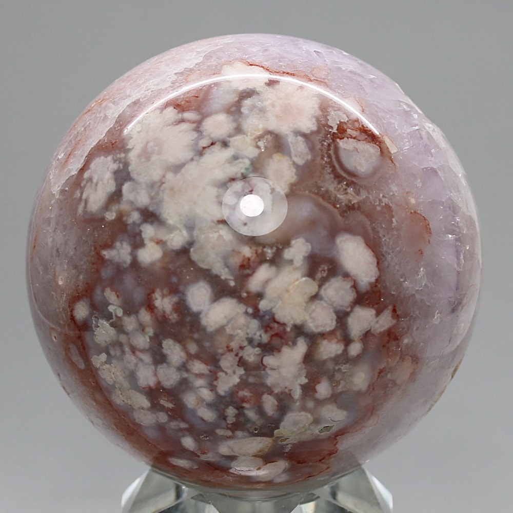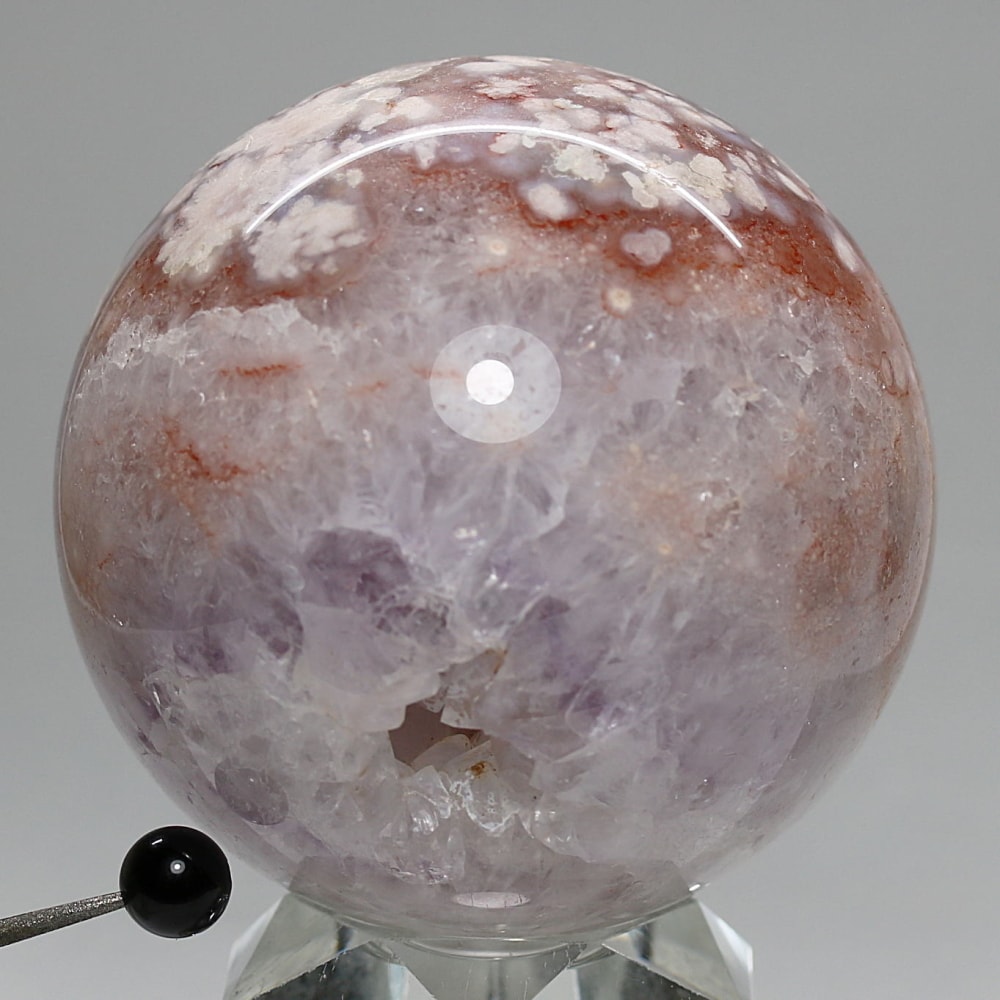 [高品質]マダガスカル産フラワーアゲート丸玉/ピンクアメジスト共生桜瑪瑙スフィア(直径約83.2mm大玉!・笑口ドゥルージータイプ)¥23,000クイックガイド送料