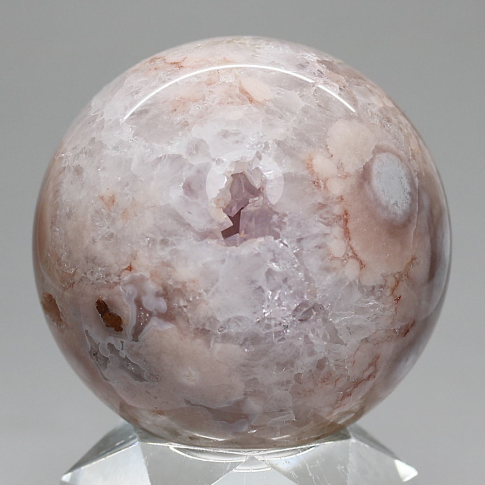 マダガスカル産の稀少な高品質ピンクアメジスト共生フラワーアゲート丸玉(スフィア)でございます。