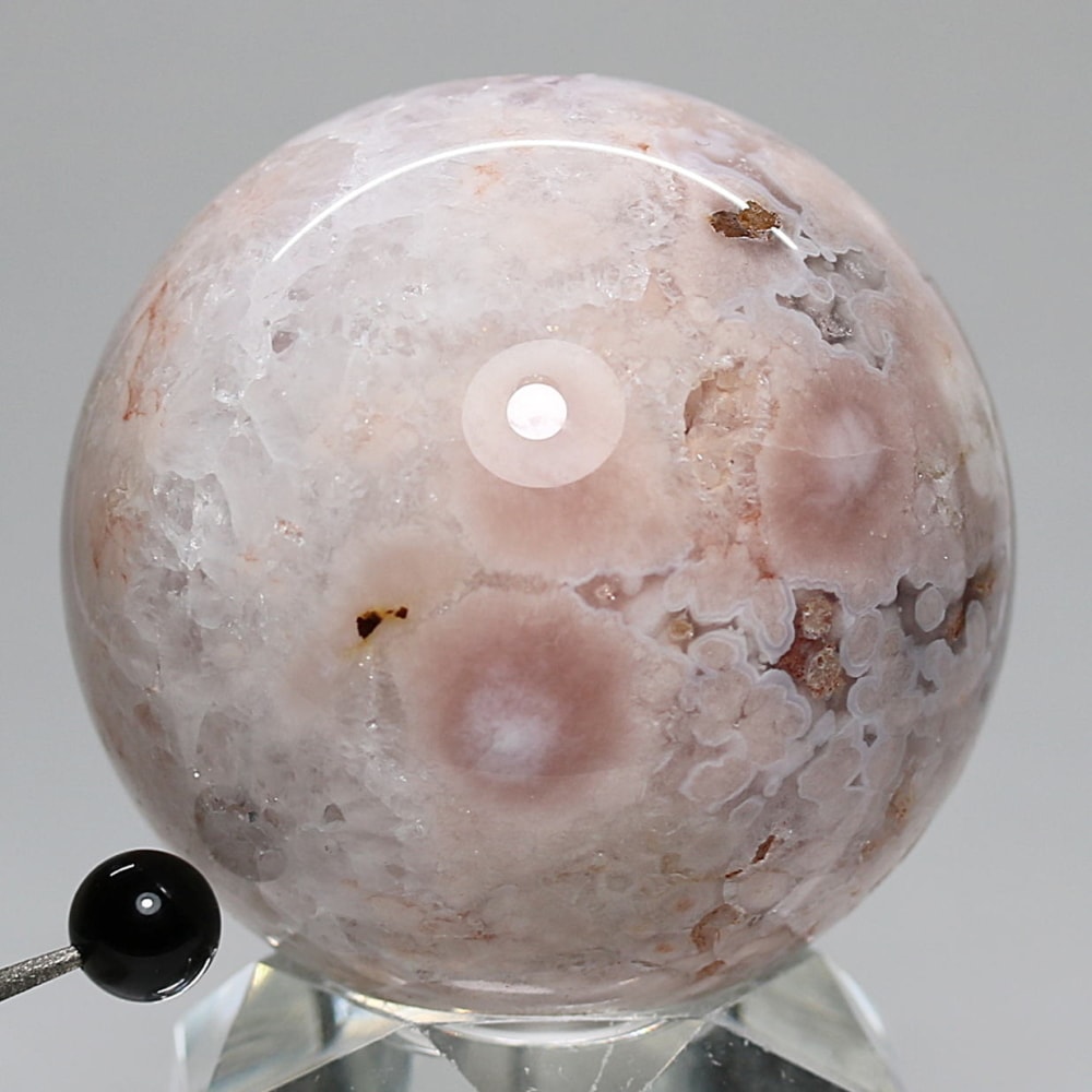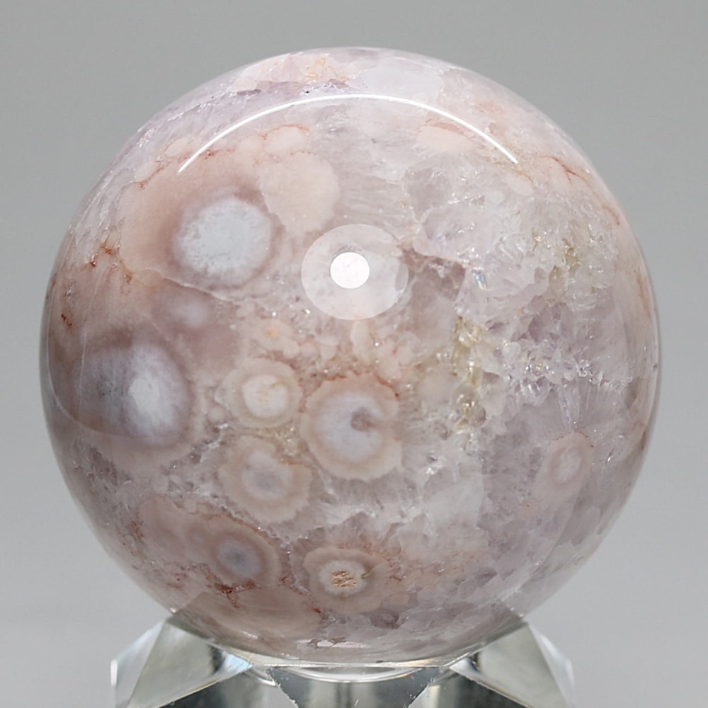 [高品質]マダガスカル産フラワーアゲート丸玉/ピンクアメジスト共生桜瑪瑙スフィア(直径約66.2mm)¥11,500クイックガイド送料