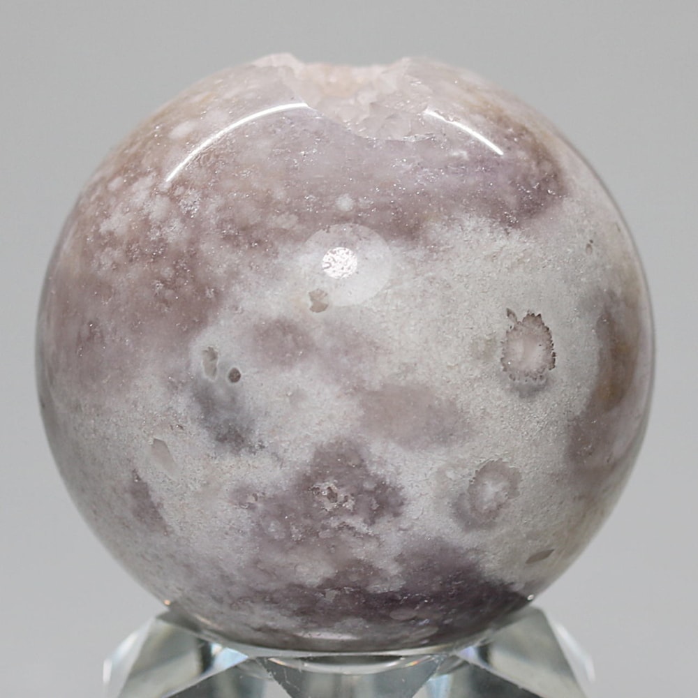 [高品質]マダガスカル産フラワーアゲート丸玉/ピンクアメジスト共生桜瑪瑙スフィア(直径約62.4mm・笑口ドゥルージータイプ)