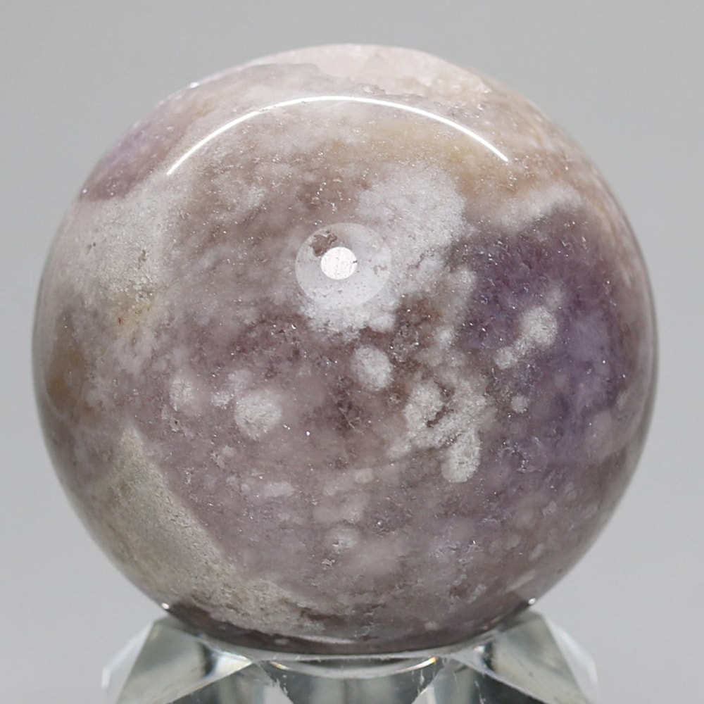 [高品質]マダガスカル産フラワーアゲート丸玉/ピンクアメジスト共生桜瑪瑙スフィア(直径約62.4mm・笑口ドゥルージータイプ)¥9,500クイックガイド送料