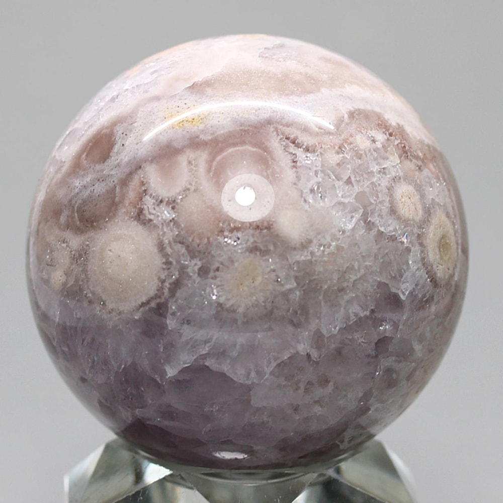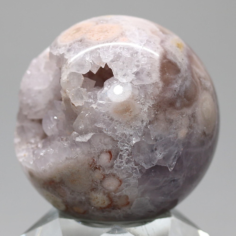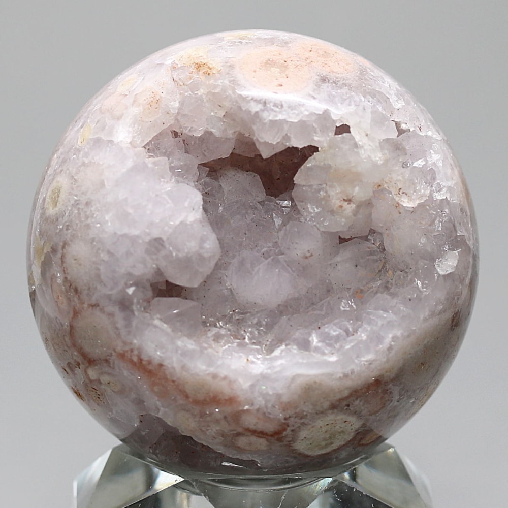[高品質]マダガスカル産フラワーアゲート丸玉/ピンクアメジスト共生桜瑪瑙スフィア(直径約62.8mm・笑口ドゥルージータイプ)¥8,700クイックガイド送料