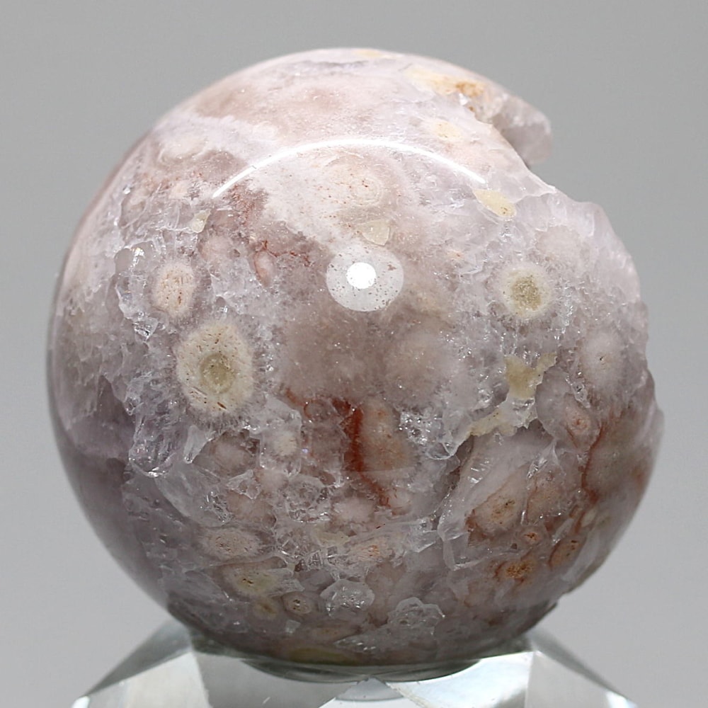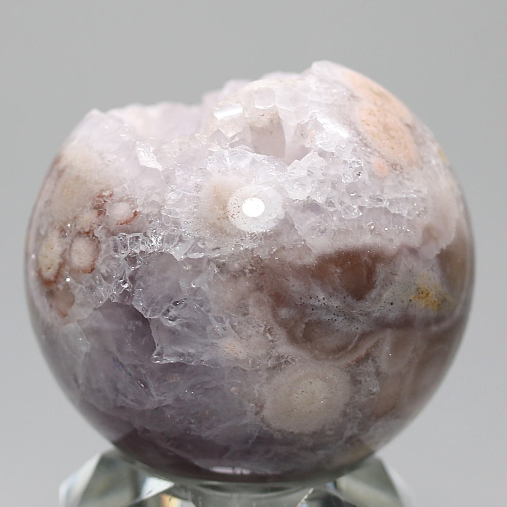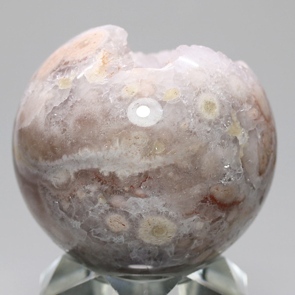 [高品質]マダガスカル産フラワーアゲート丸玉/ピンクアメジスト共生桜瑪瑙スフィア(直径約62.8mm・笑口ドゥルージータイプ)